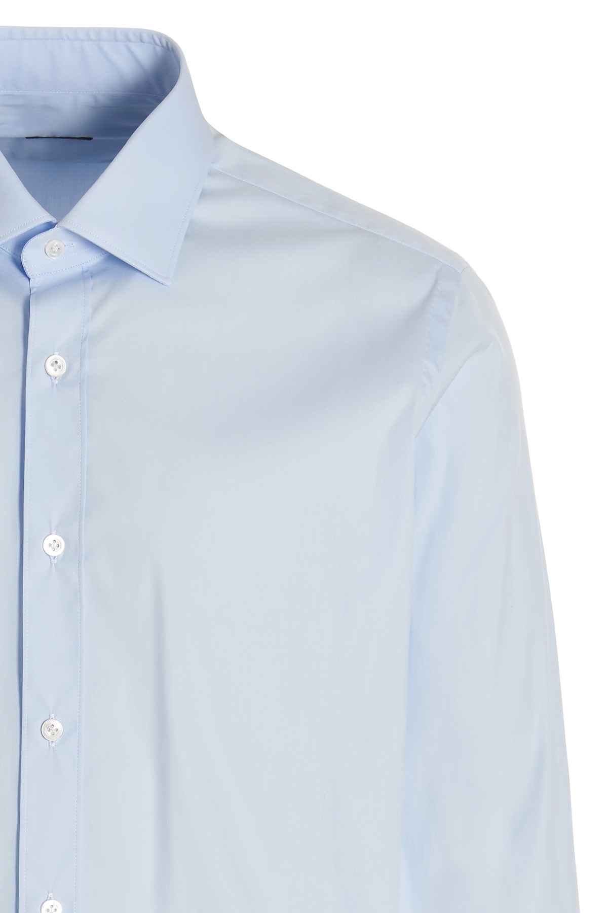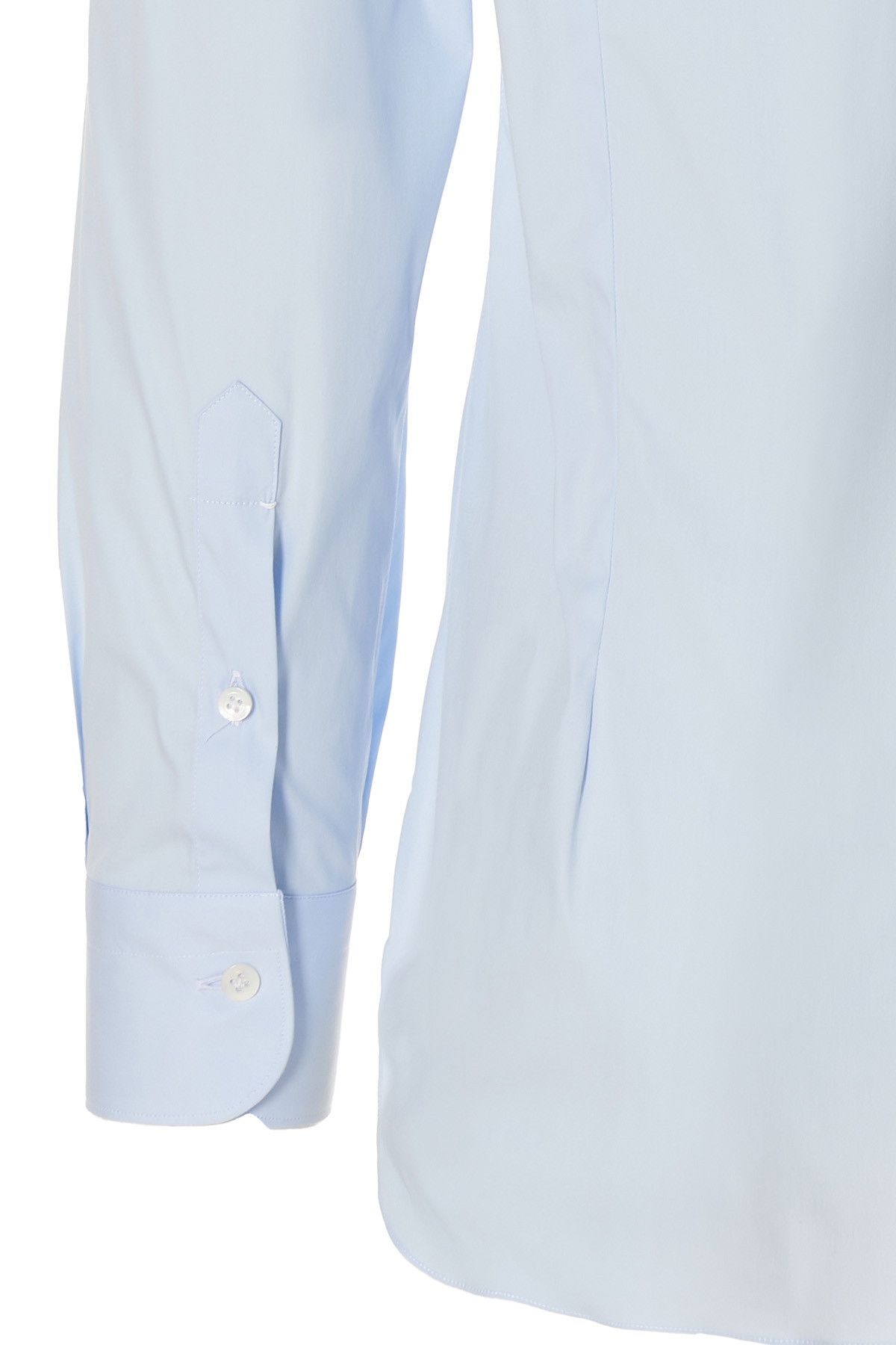 Cotton poplin shirt with button closure, long cuffed sleeves.