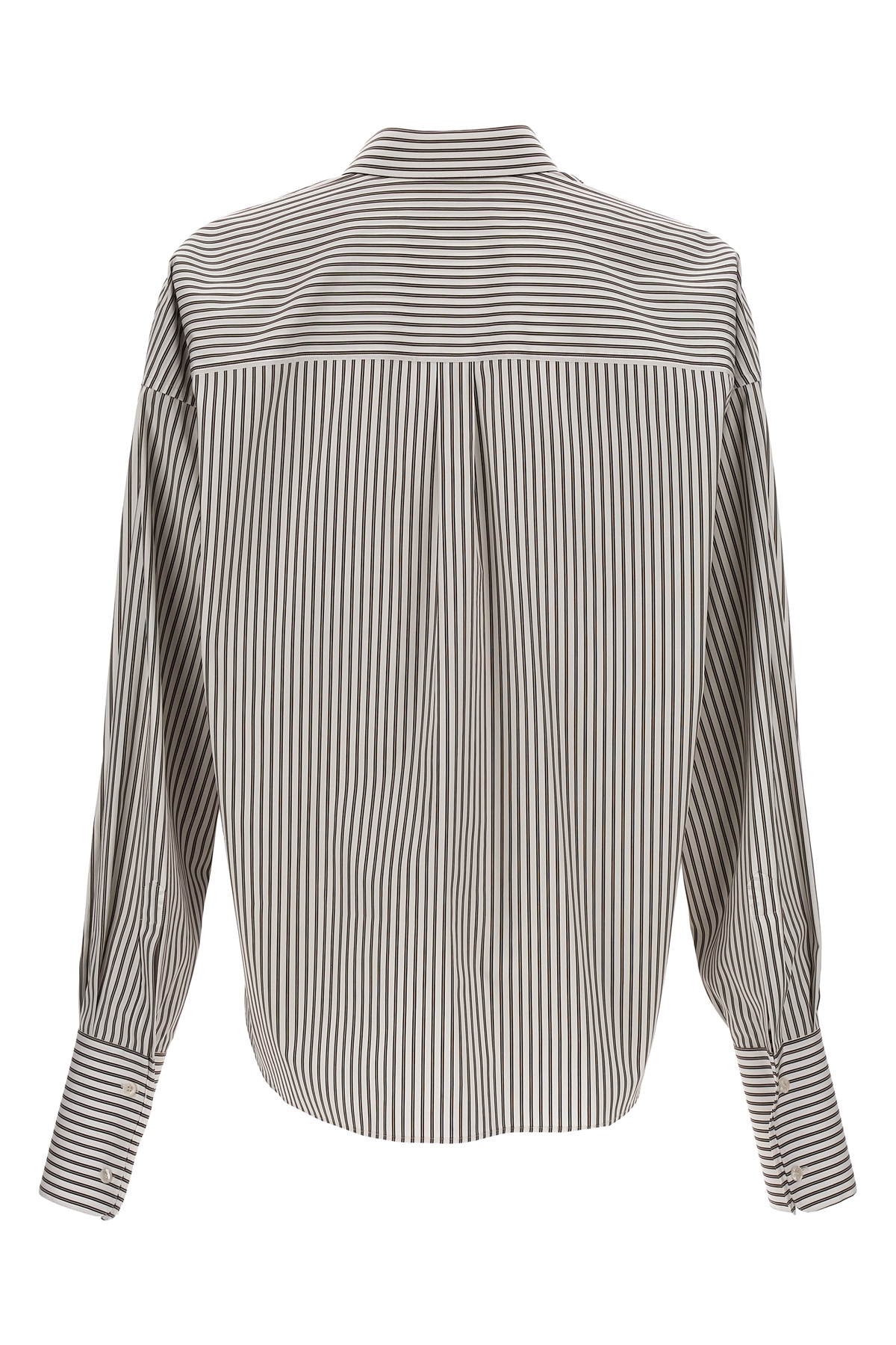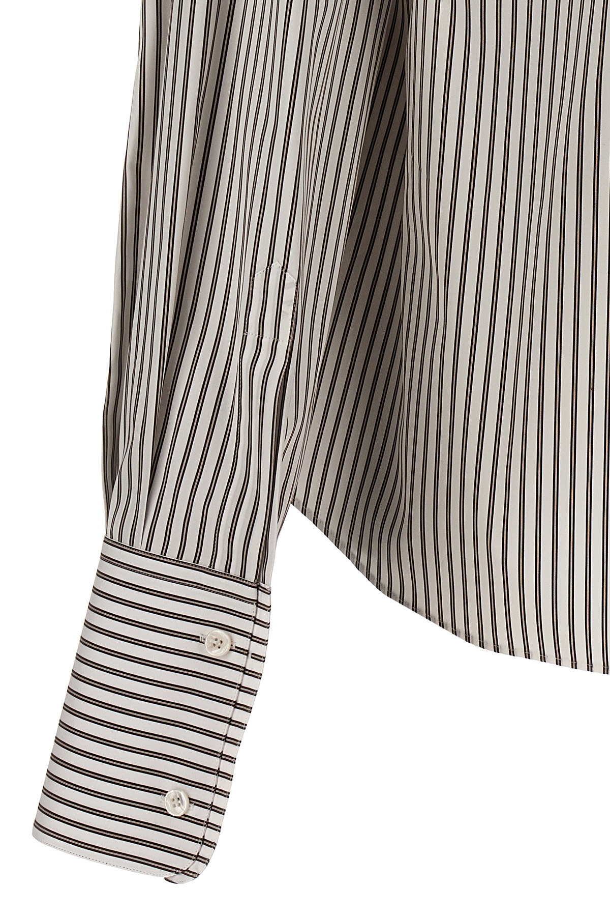 Striped cotton poplin shirt with button closure, long cuffed sleeves.