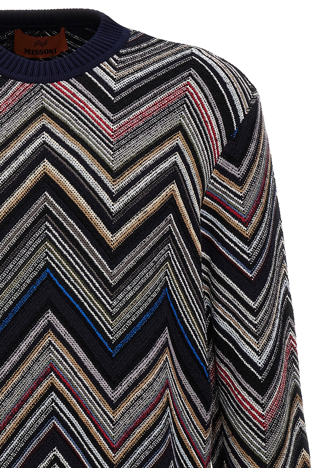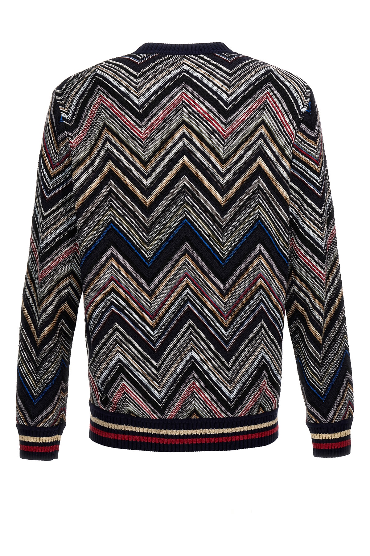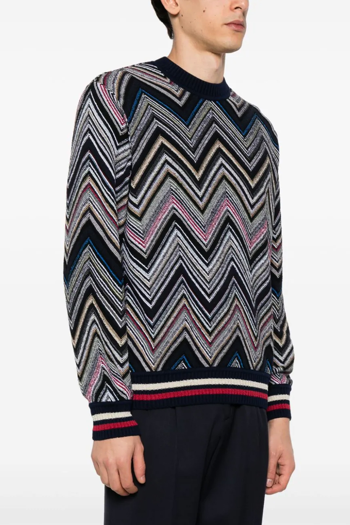 Cotton blend sweater with all-over 'Zig Zag' pattern, crew neck, long cuffed sleeves.