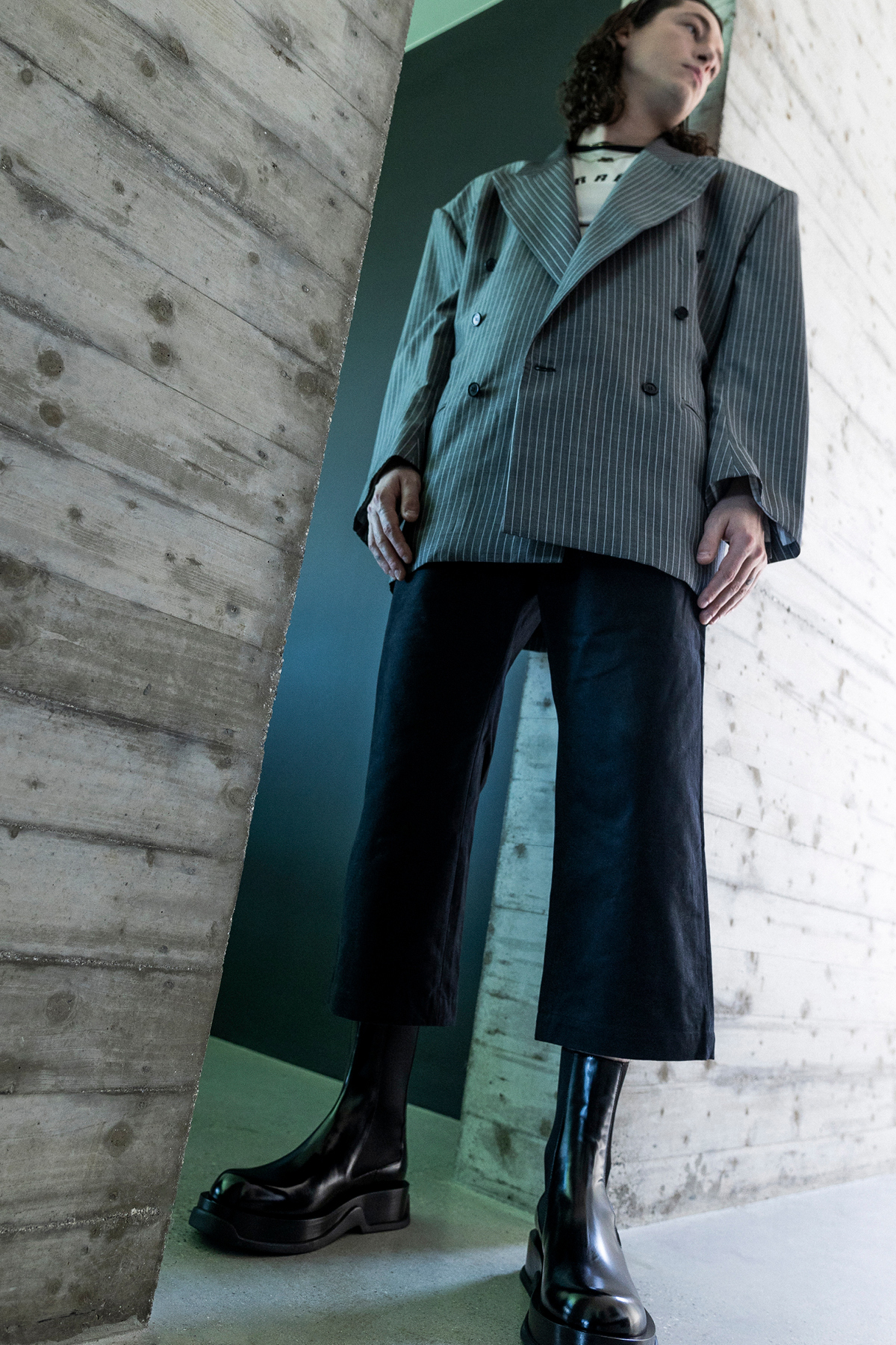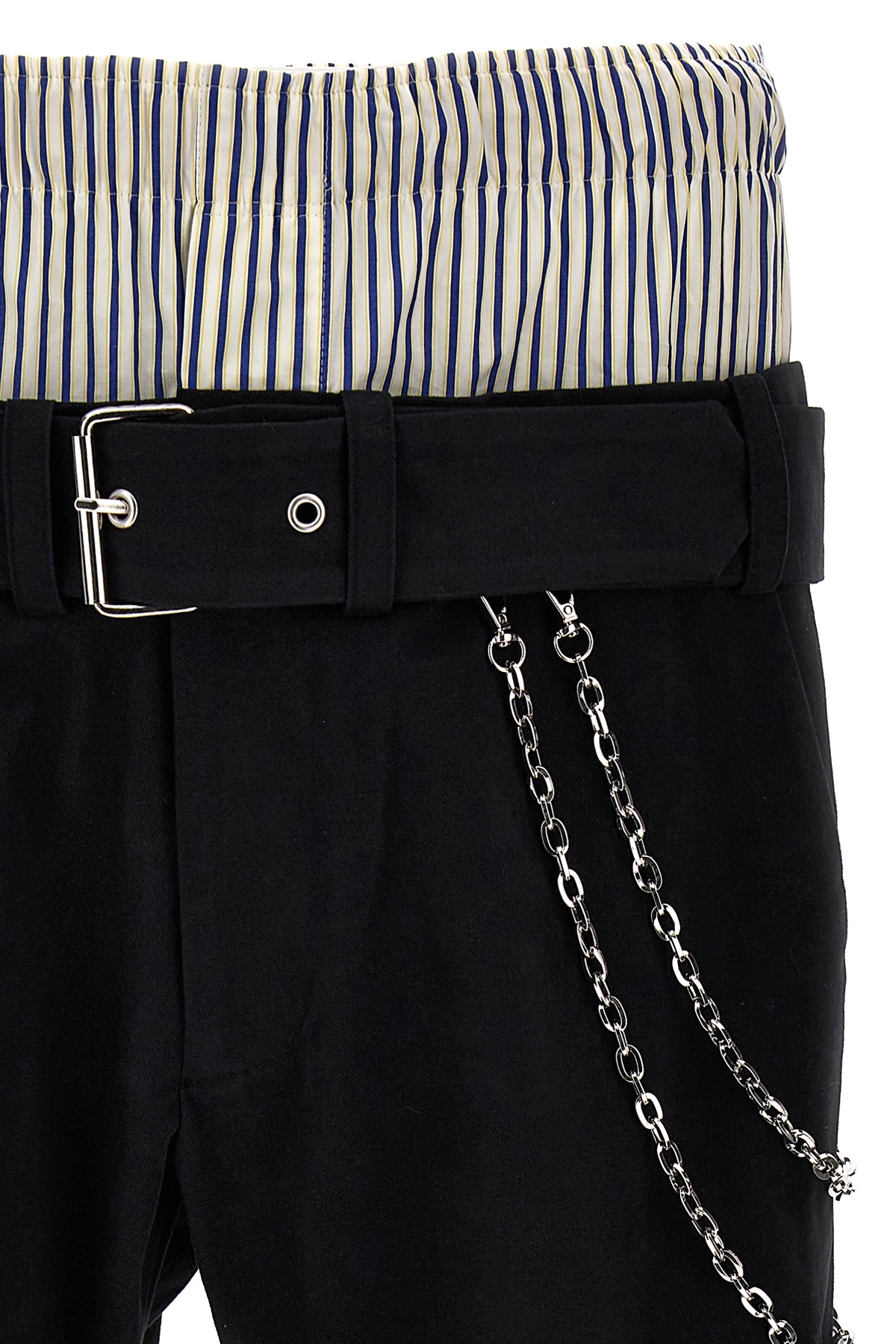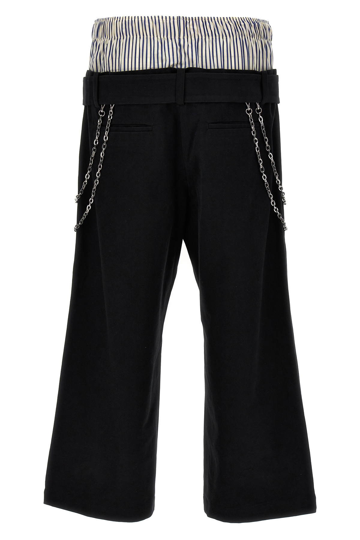 'Double Layered Boxer' cotton pants with elastic waistband, zip and hook closure, belt at the waist, removable chain detail, pockets.