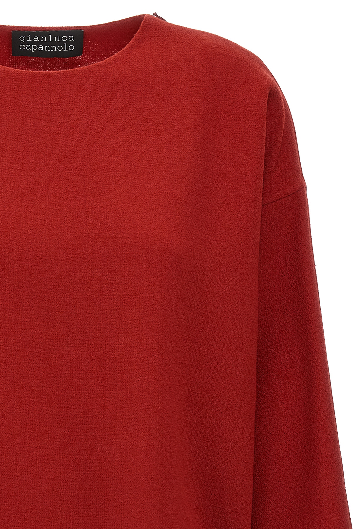 Bettina' wool crewneck top with long sleeves and zip closure on the shoulder.