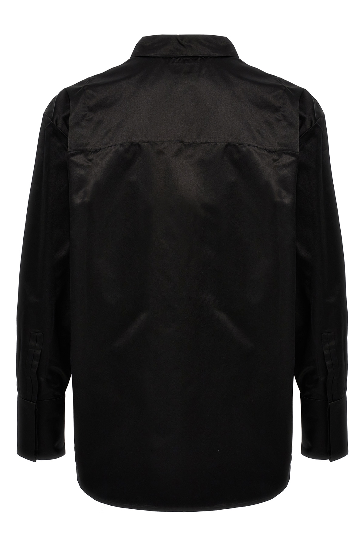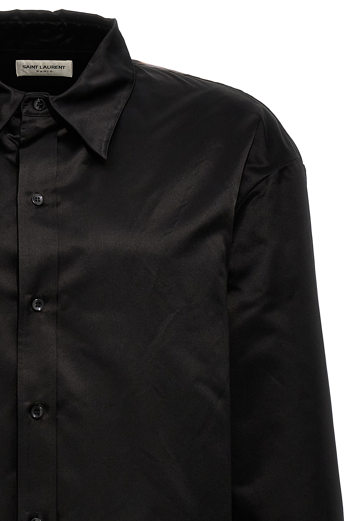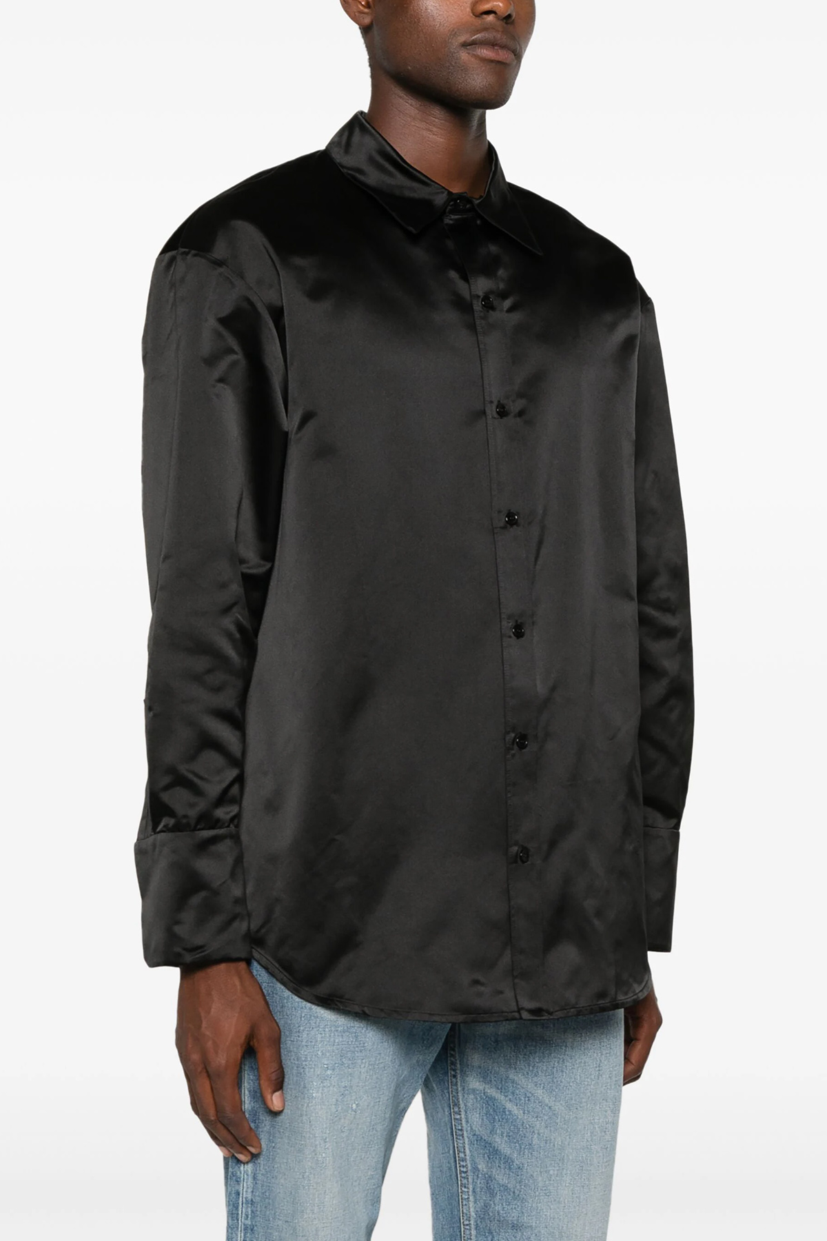Duchesse silk satin shirt with button closure, long cuffed sleeves.