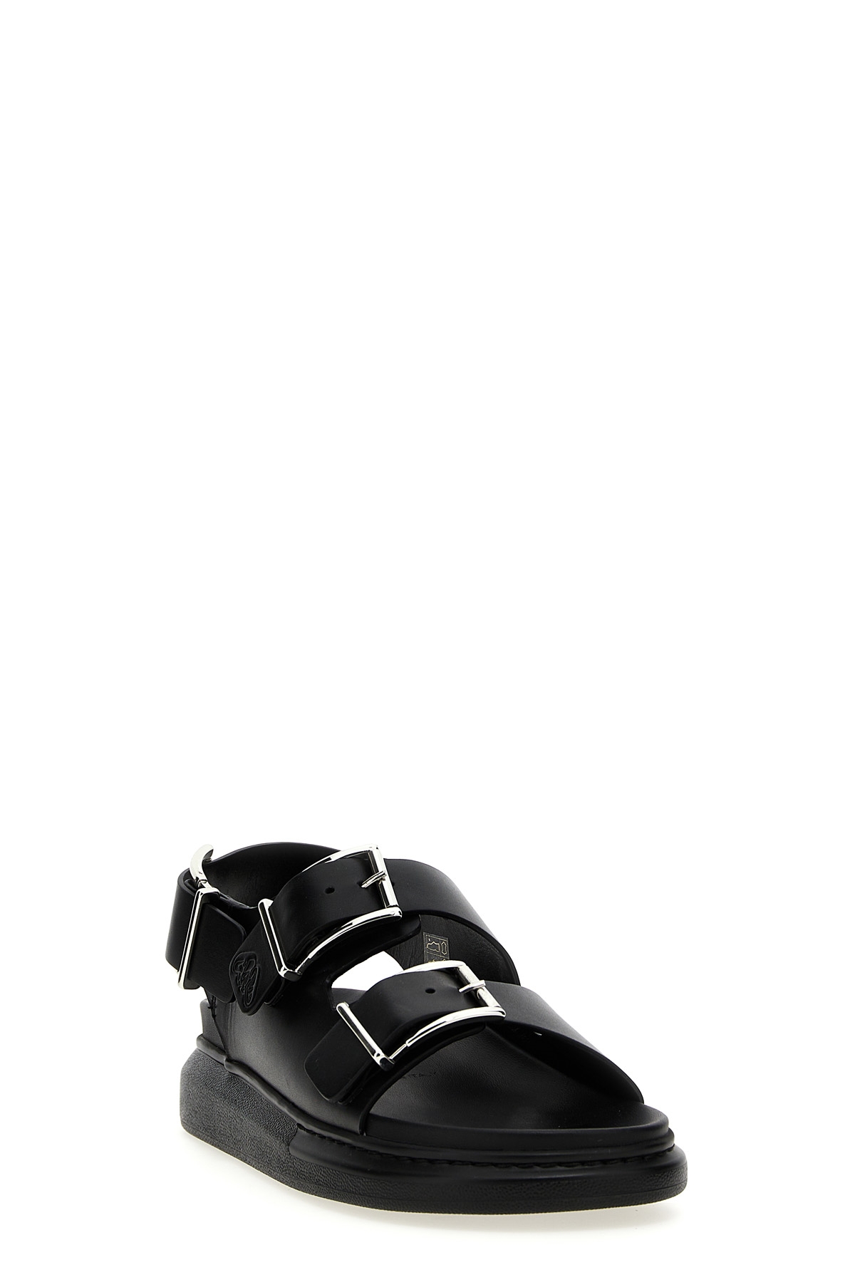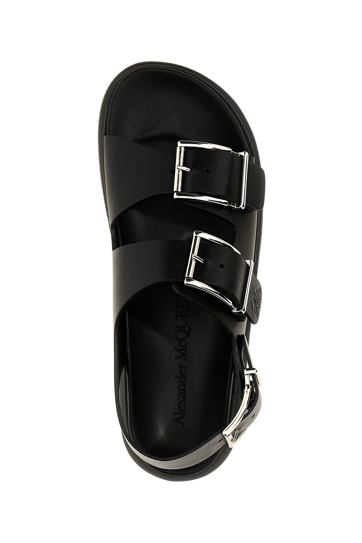 Leather sandals with adjustable straps and buckles. Rubber sole.