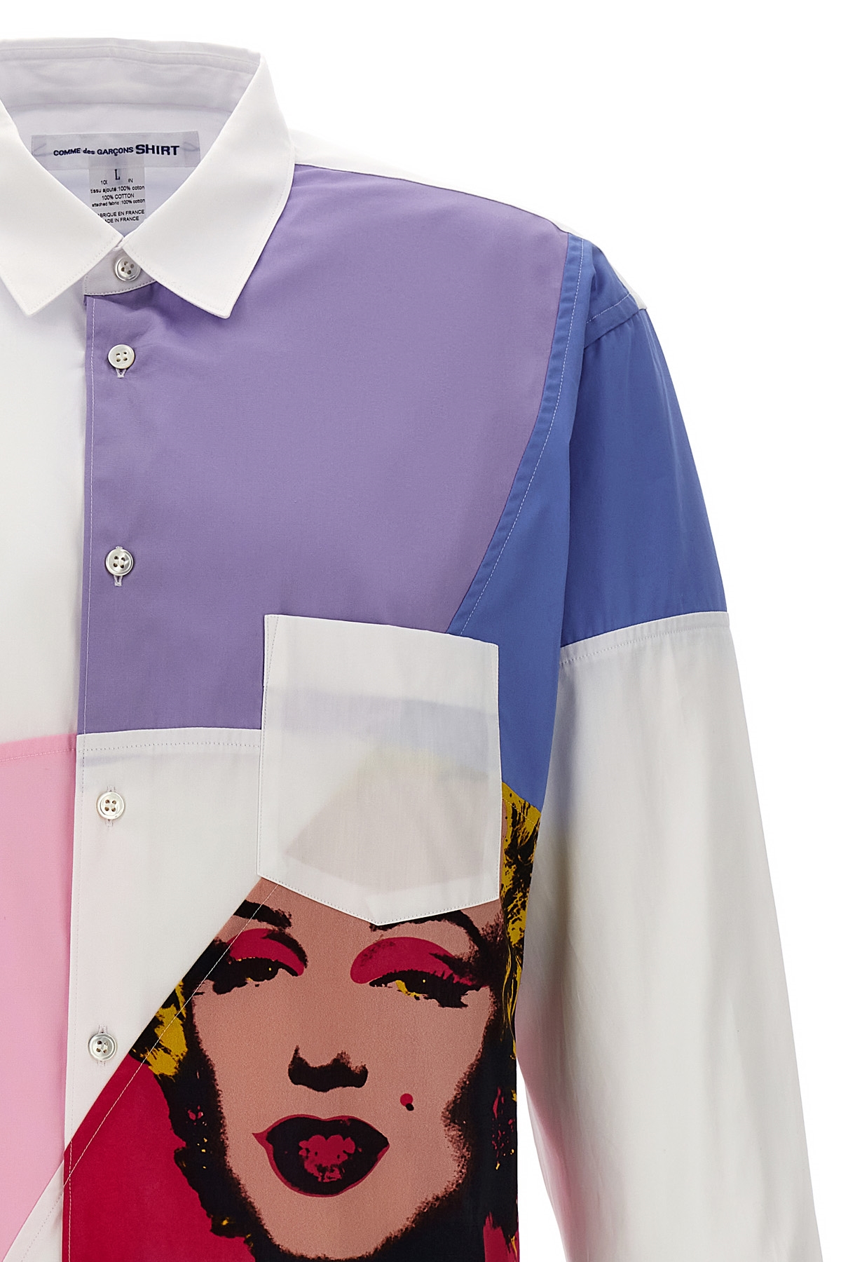 'Andy Warhol' patchwork cotton shirt with contrast print, front pocket, button closure, long cuffed sleeves.