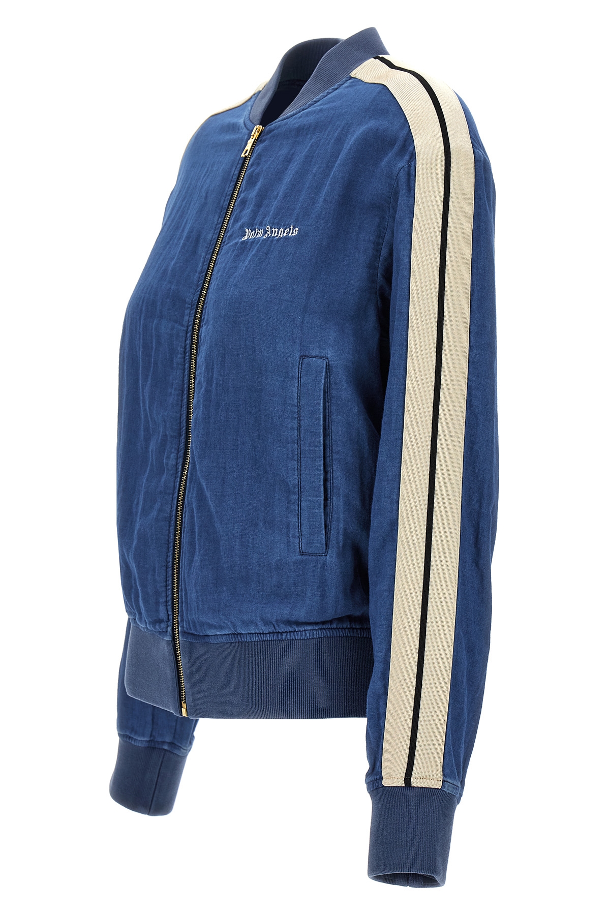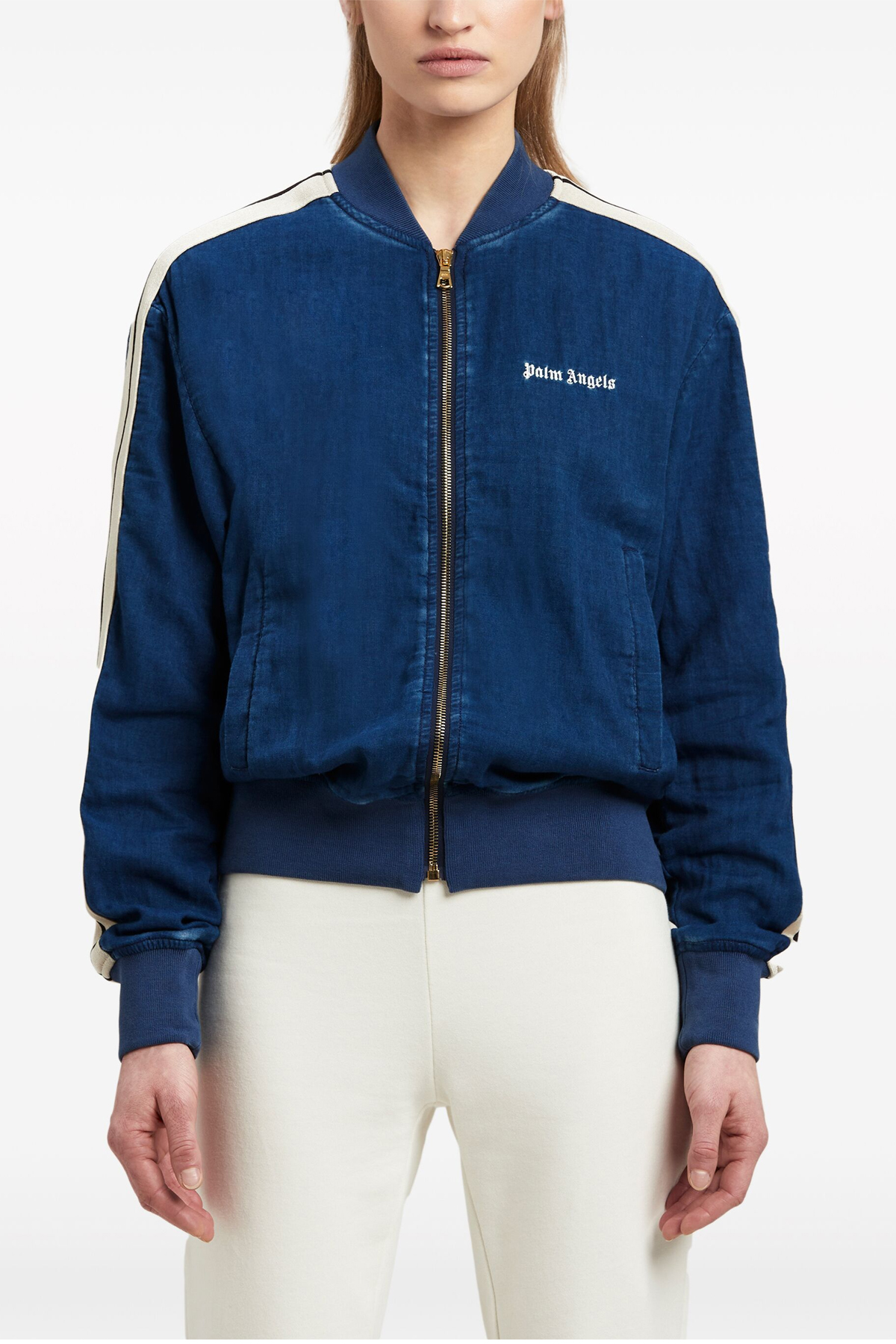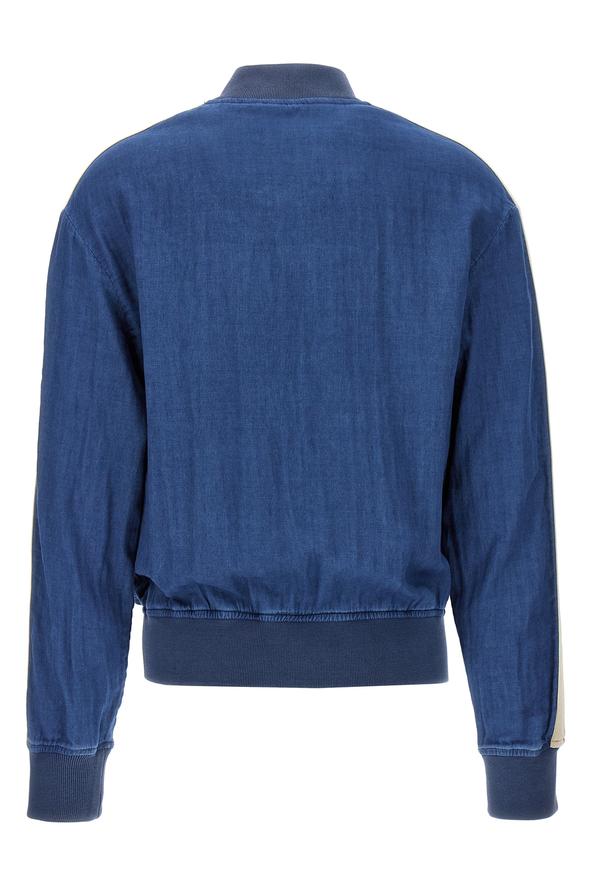 'Track' chambray sweatshirt with contrast bands on the sleeves, zip closure, front logo embroidery, pockets, long cuffed sleeves.