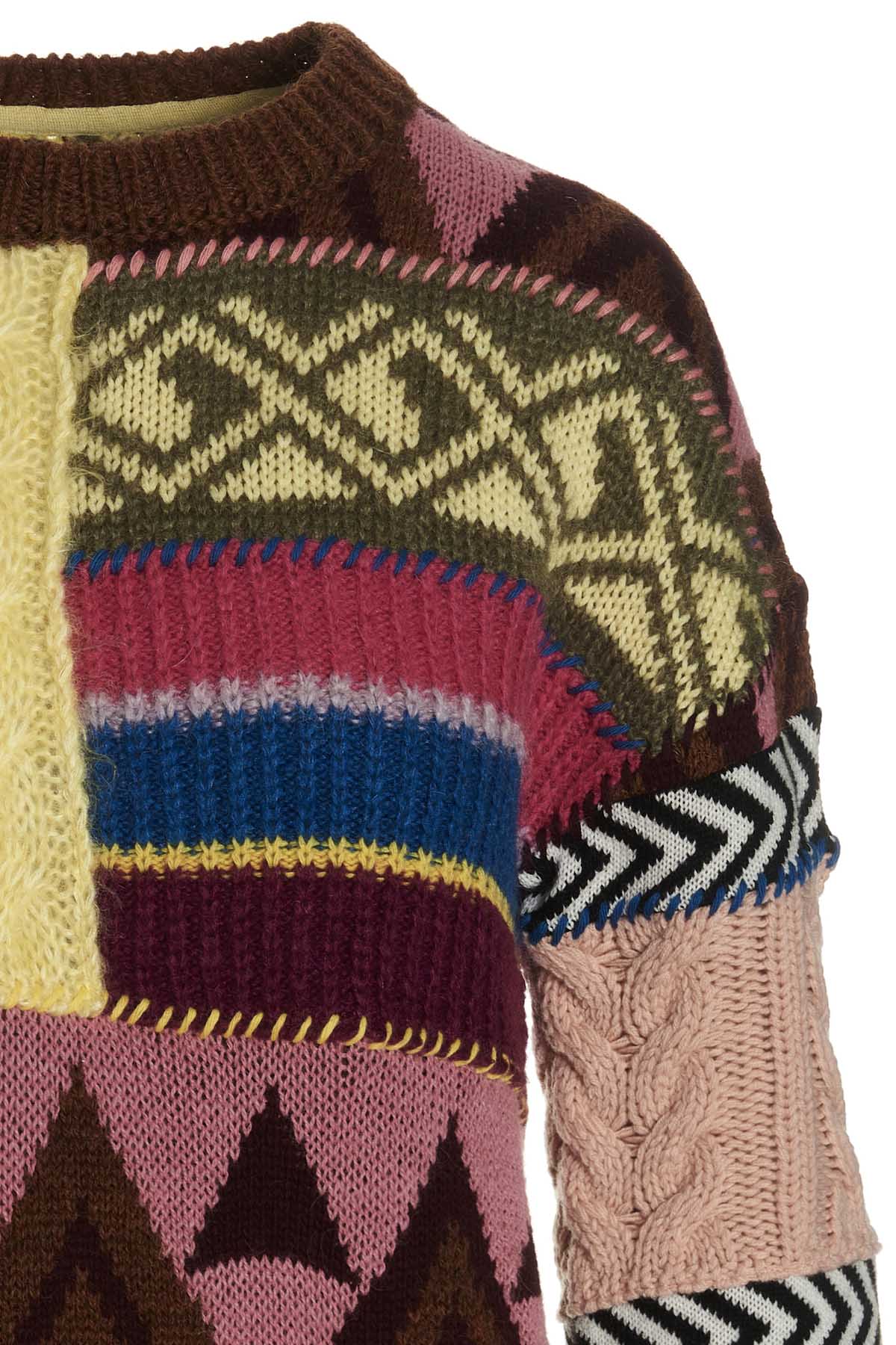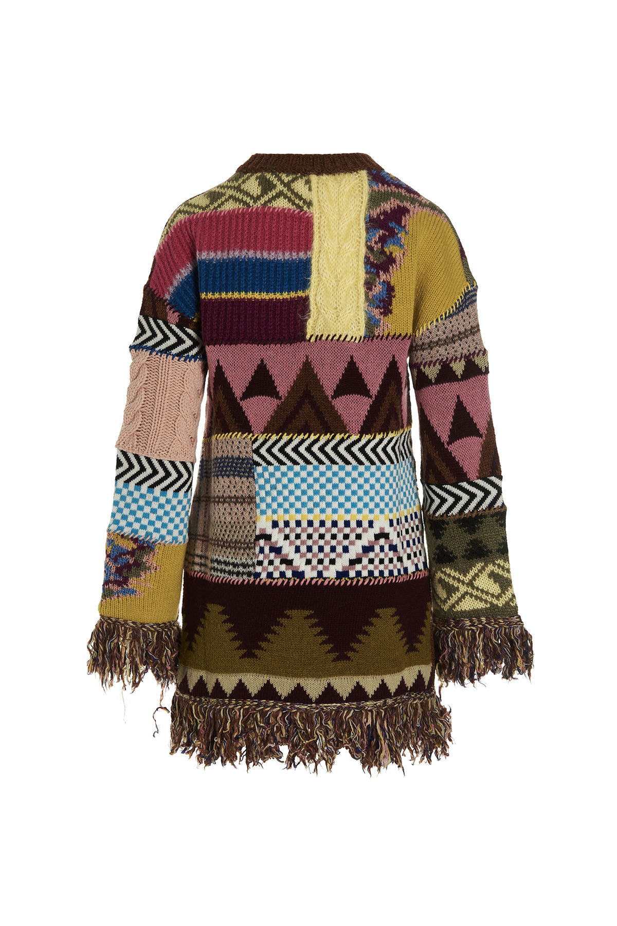 Virginia' multicolor multifantasia knit minidress with crewneck and fringed hem.