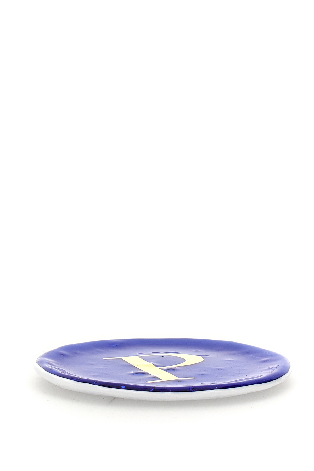 Glass valet tray with the letter 'P' hand-painted in gold.