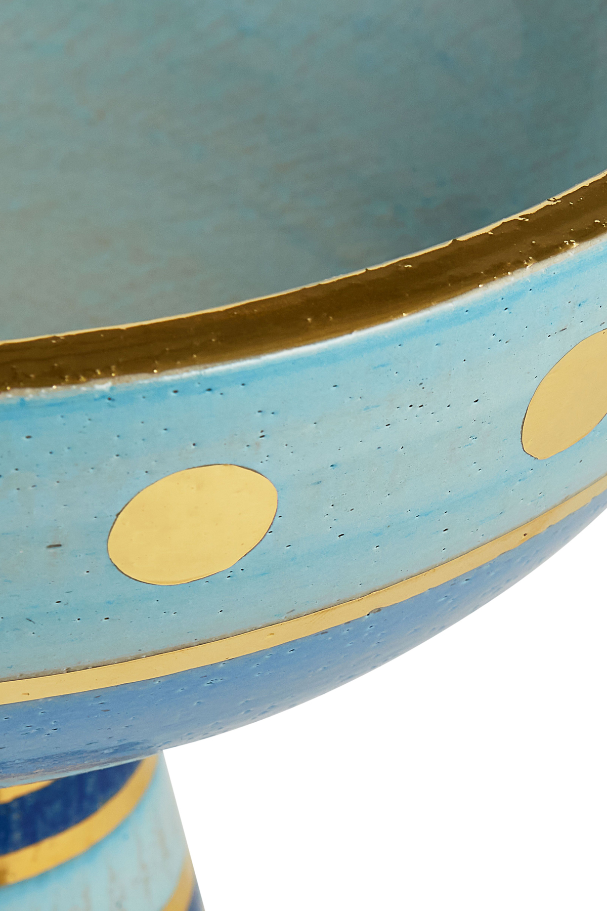 Back from the vault, a classic JA collection: Chroma. Each bowl is made of stoneware infused with large grog, then finished with hand-painted blue glazes and golden sheen. Pair all three together for a multi-level centerpiece.