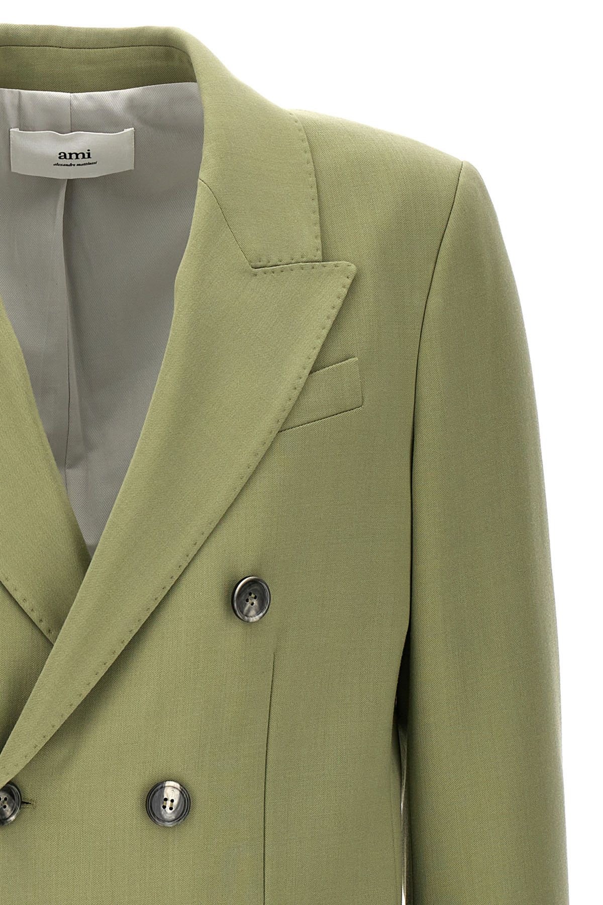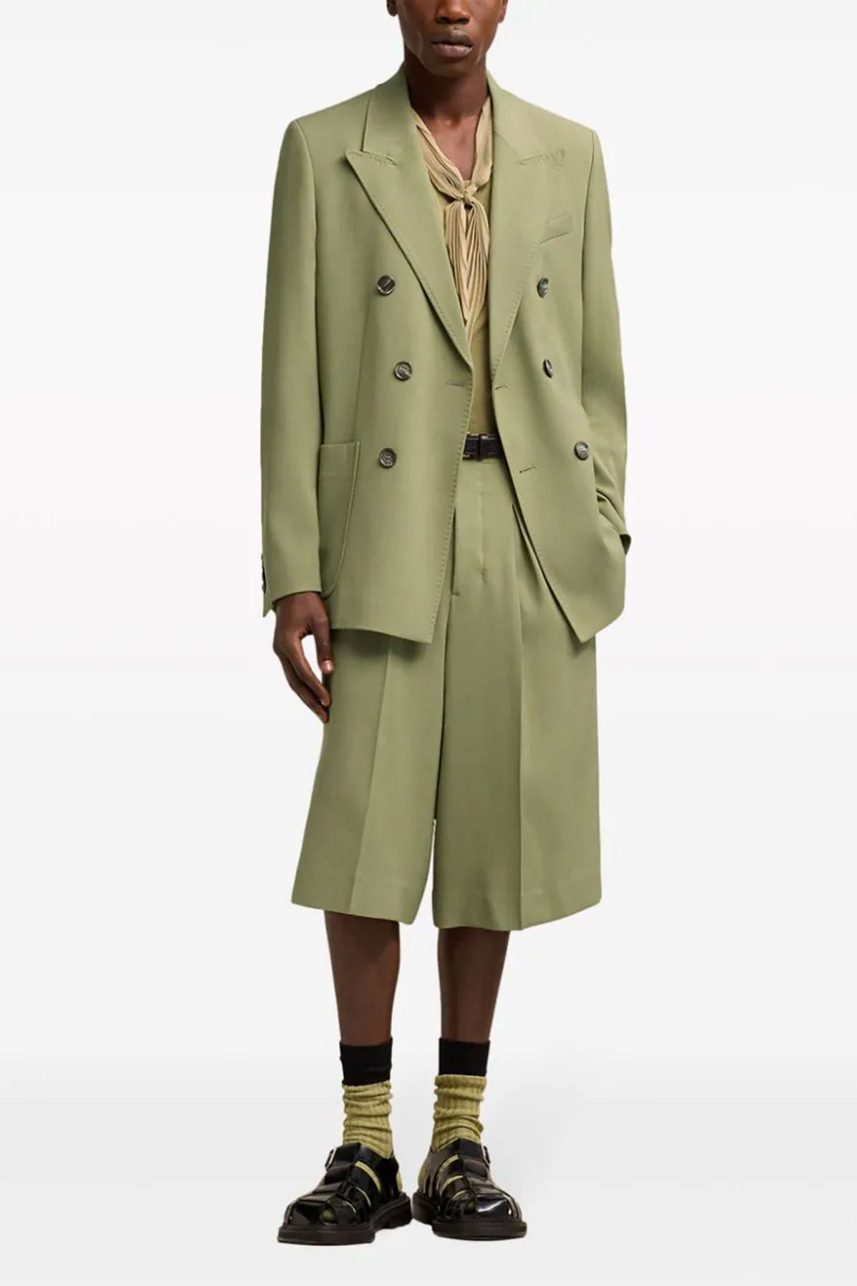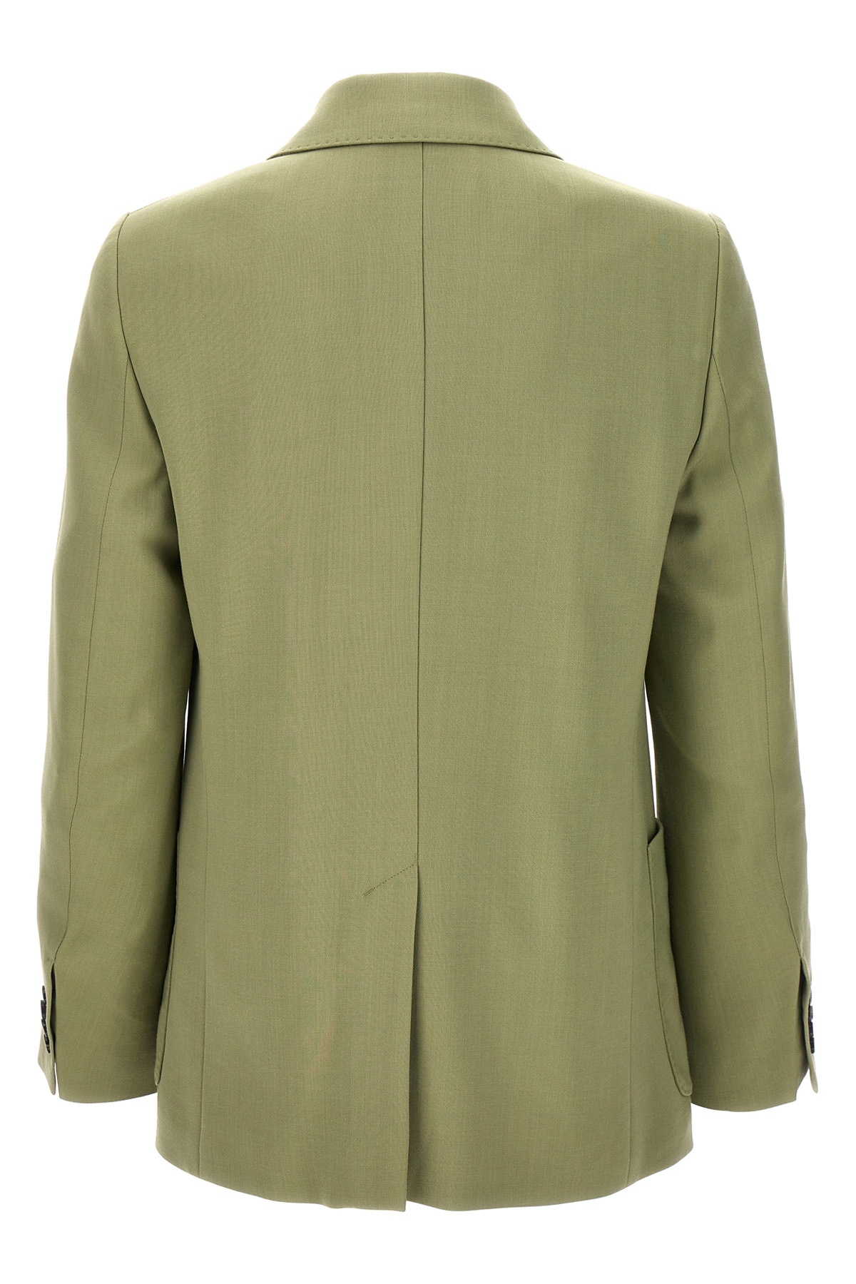 Double-breasted blazer in wool blend with button closure, pockets, long sleeves, back split.