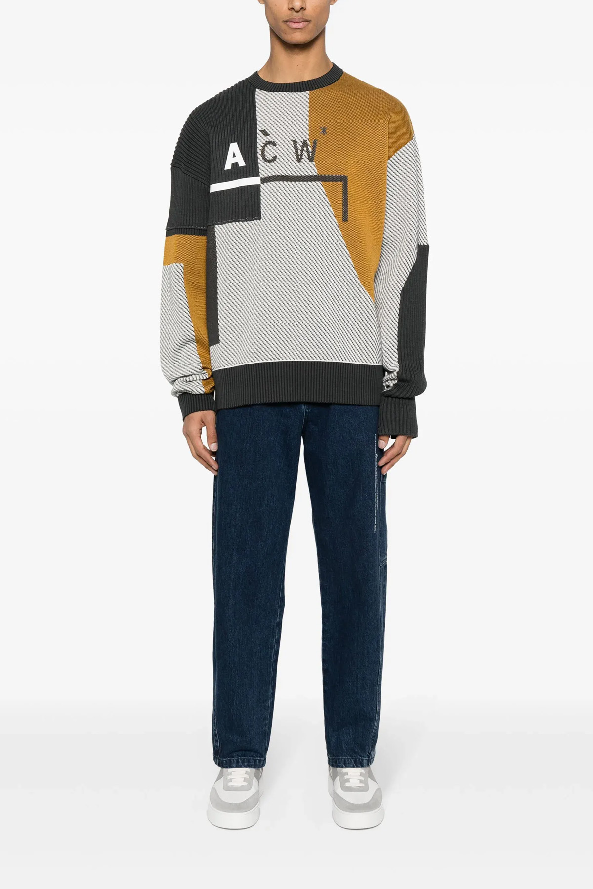 'Discourse' cotton denim jeans with front logo print, button closure, pockets.