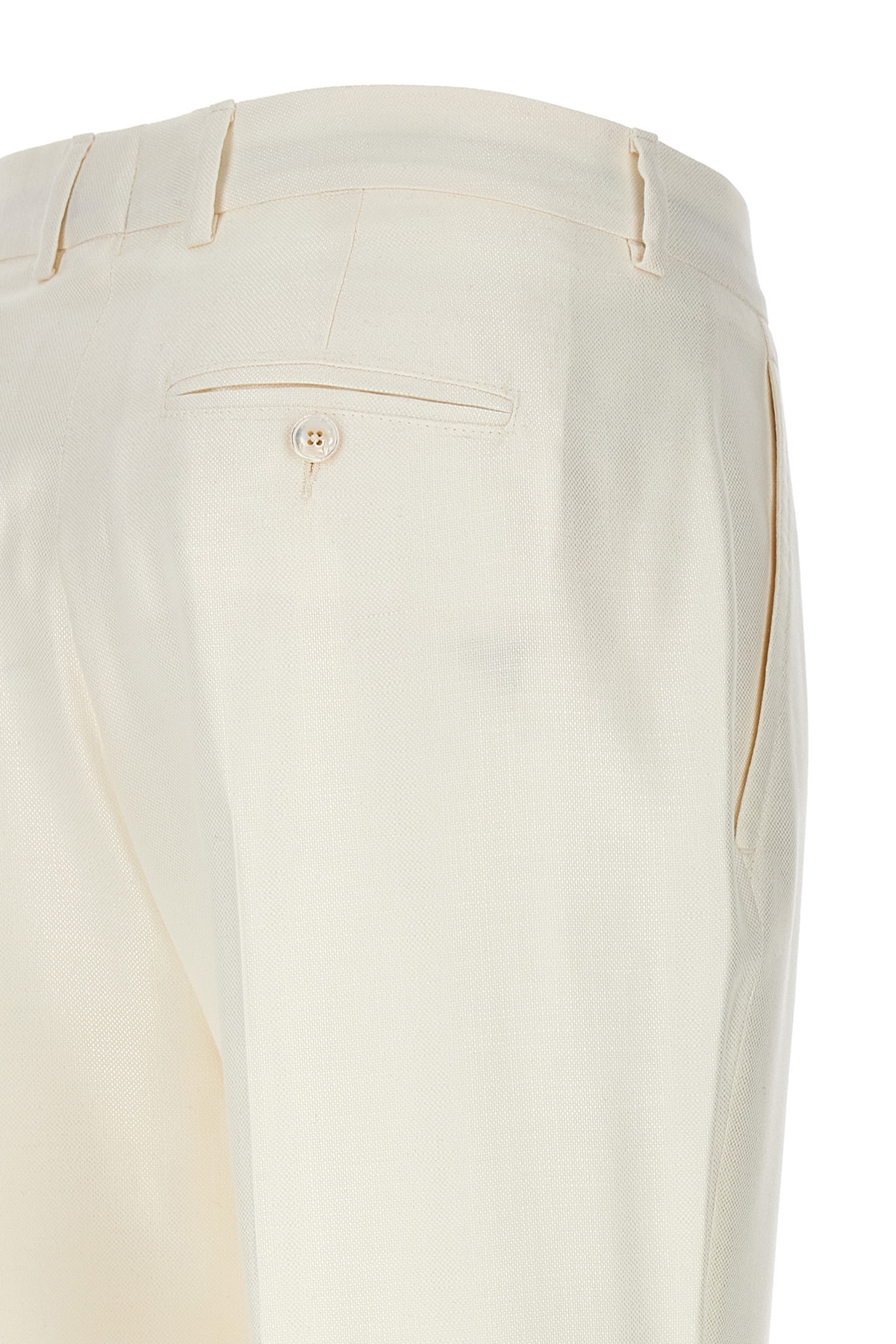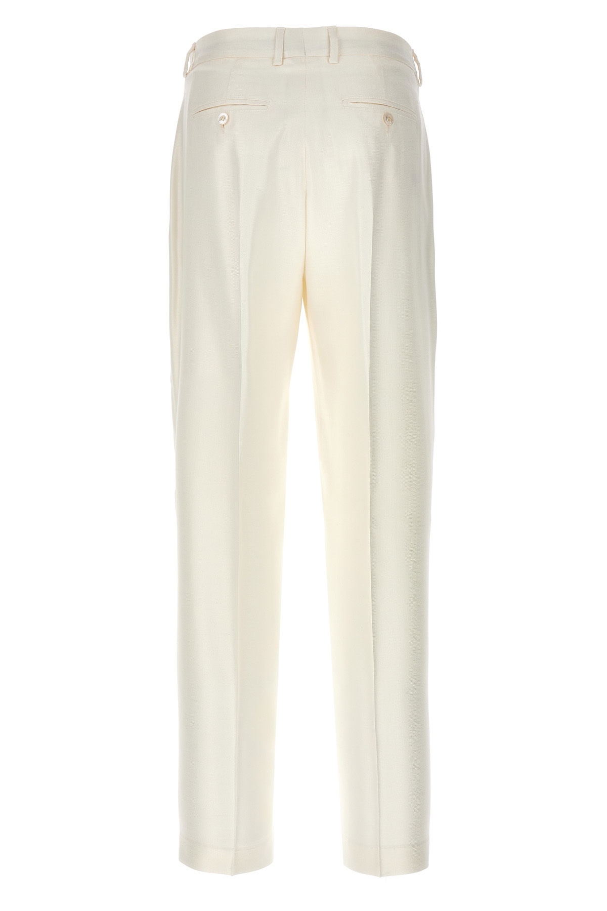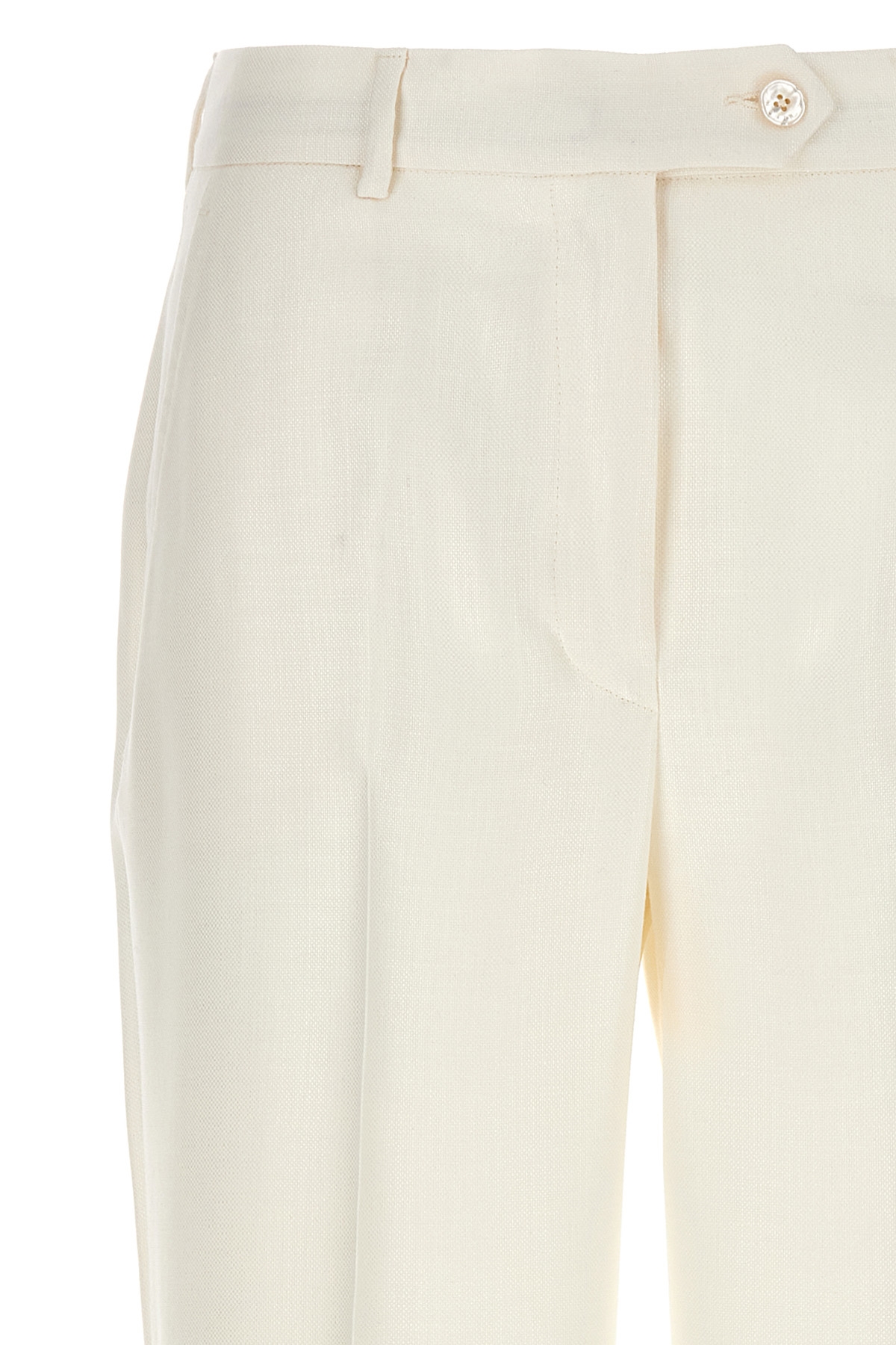 Cigarette-style viscose pants, zip and button closure, pockets.