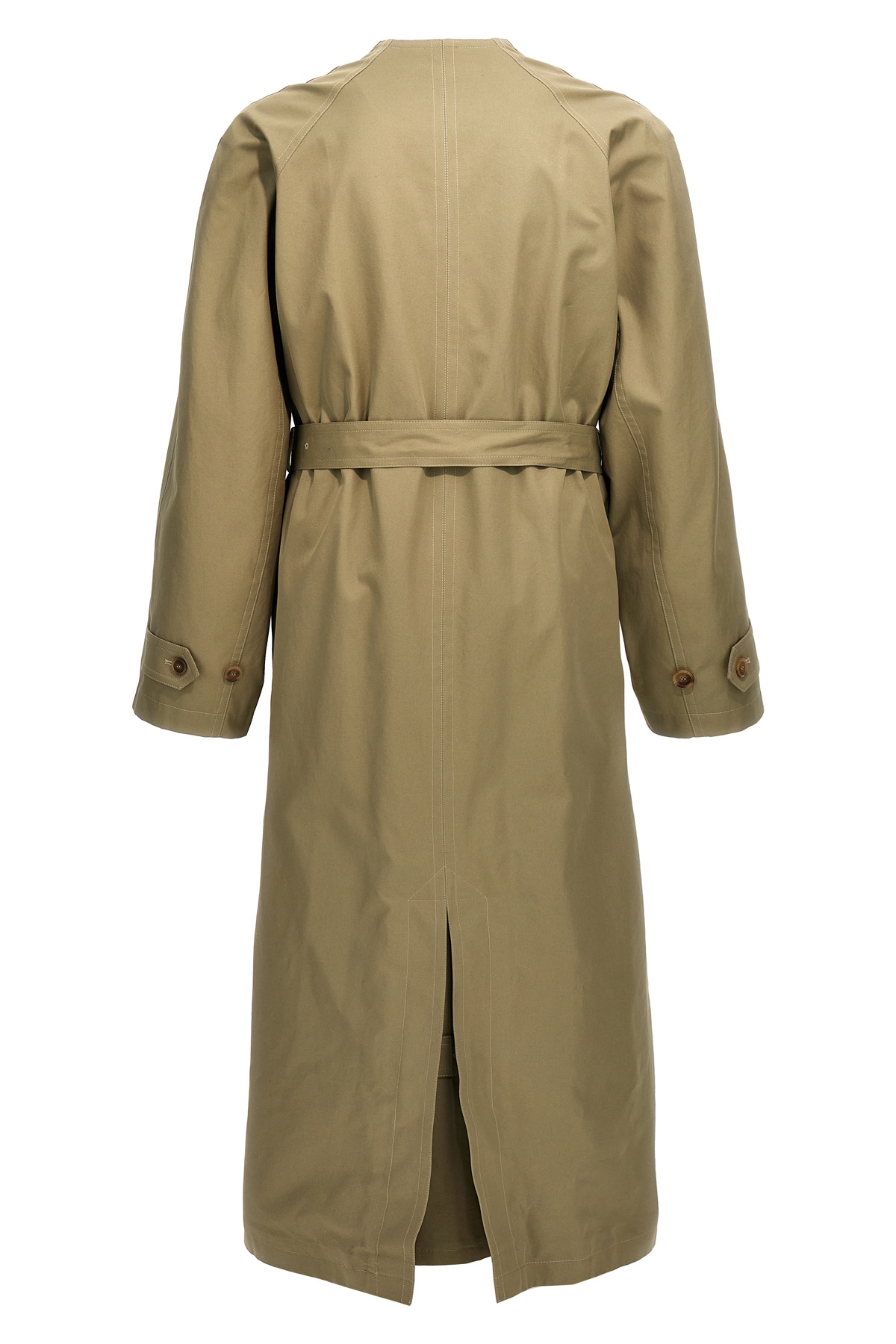 Oversize cotton trench coat with check print lining, single-breasted model with button closure, belt at the waist, pockets, long sleeves, back vent.