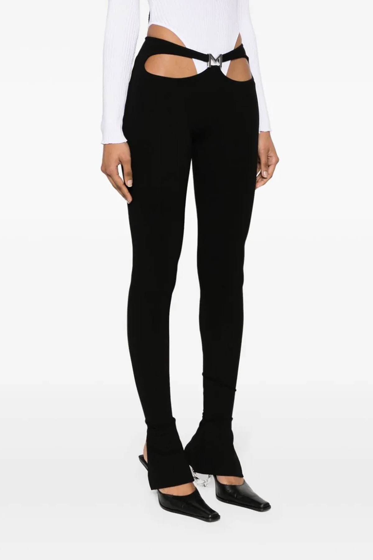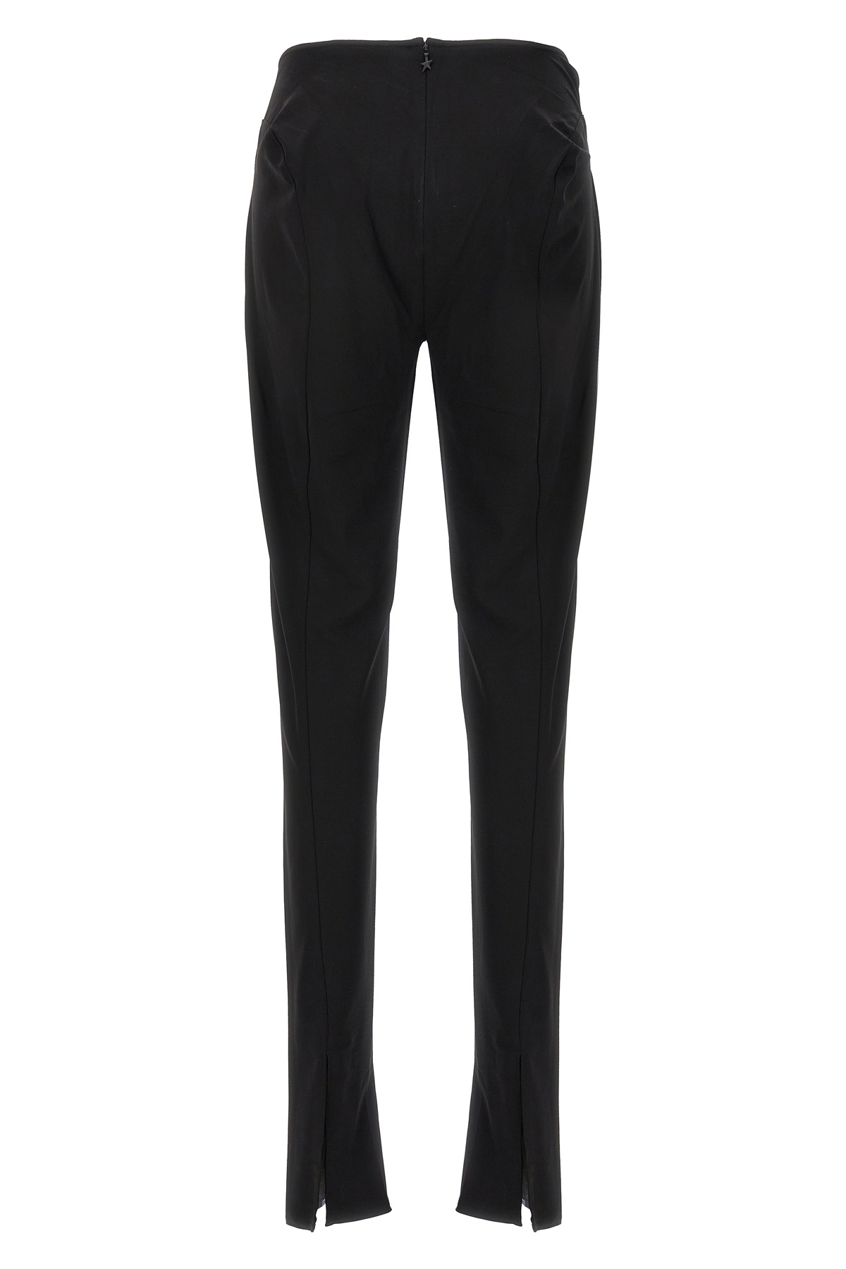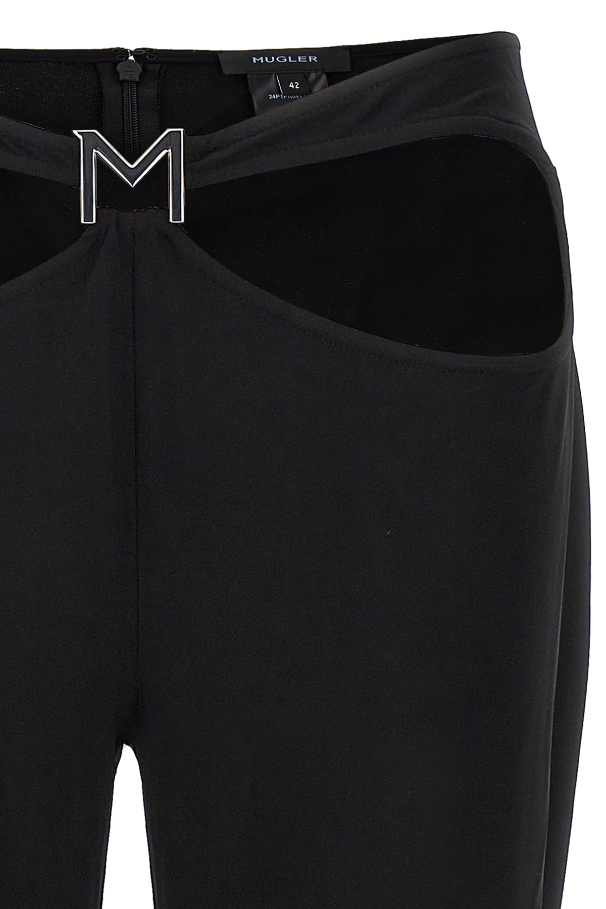 'm cut-out' stretch fabric pants with cut-out details at the waist and metal logo patch, back zip closure, slits on the leg bottom.