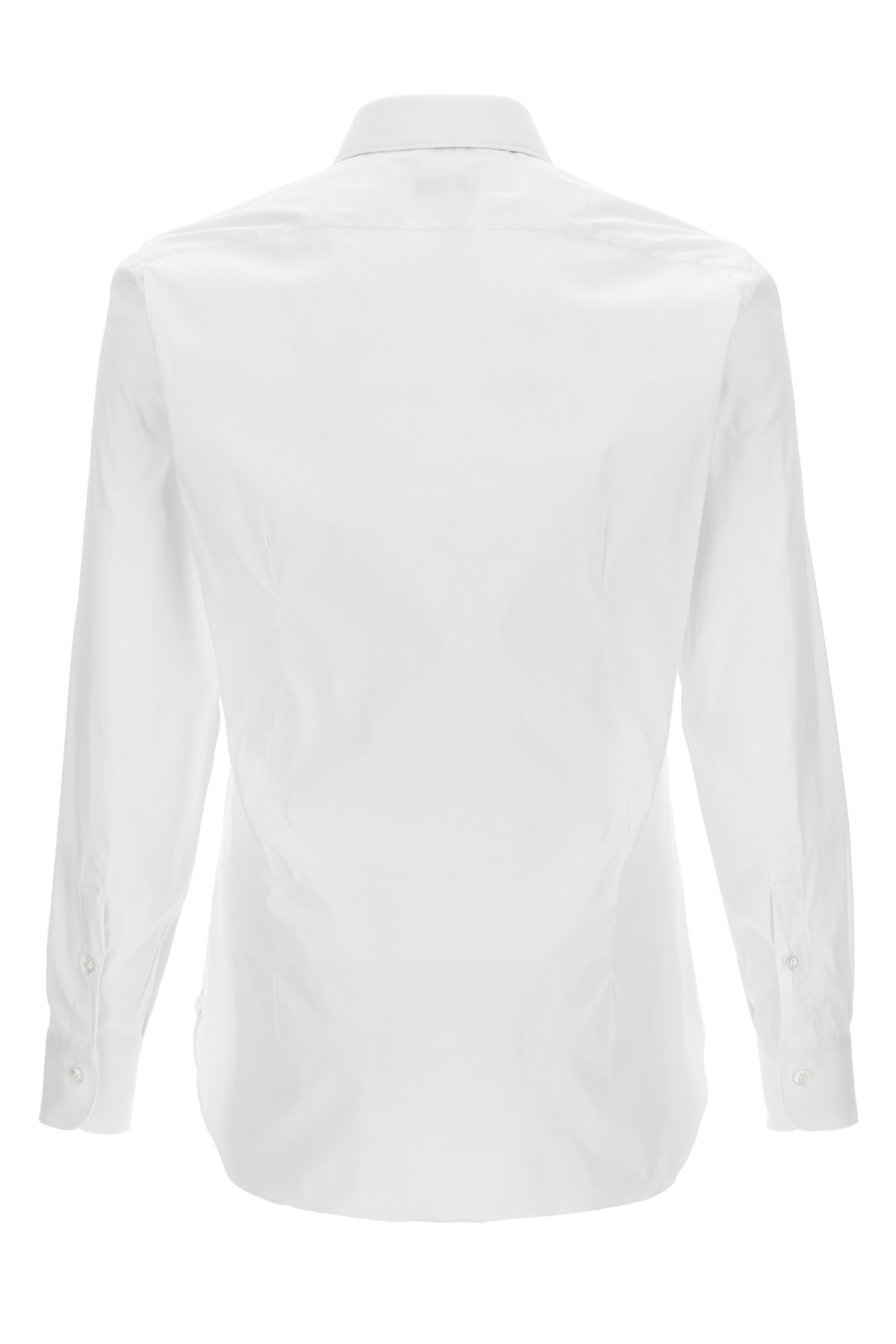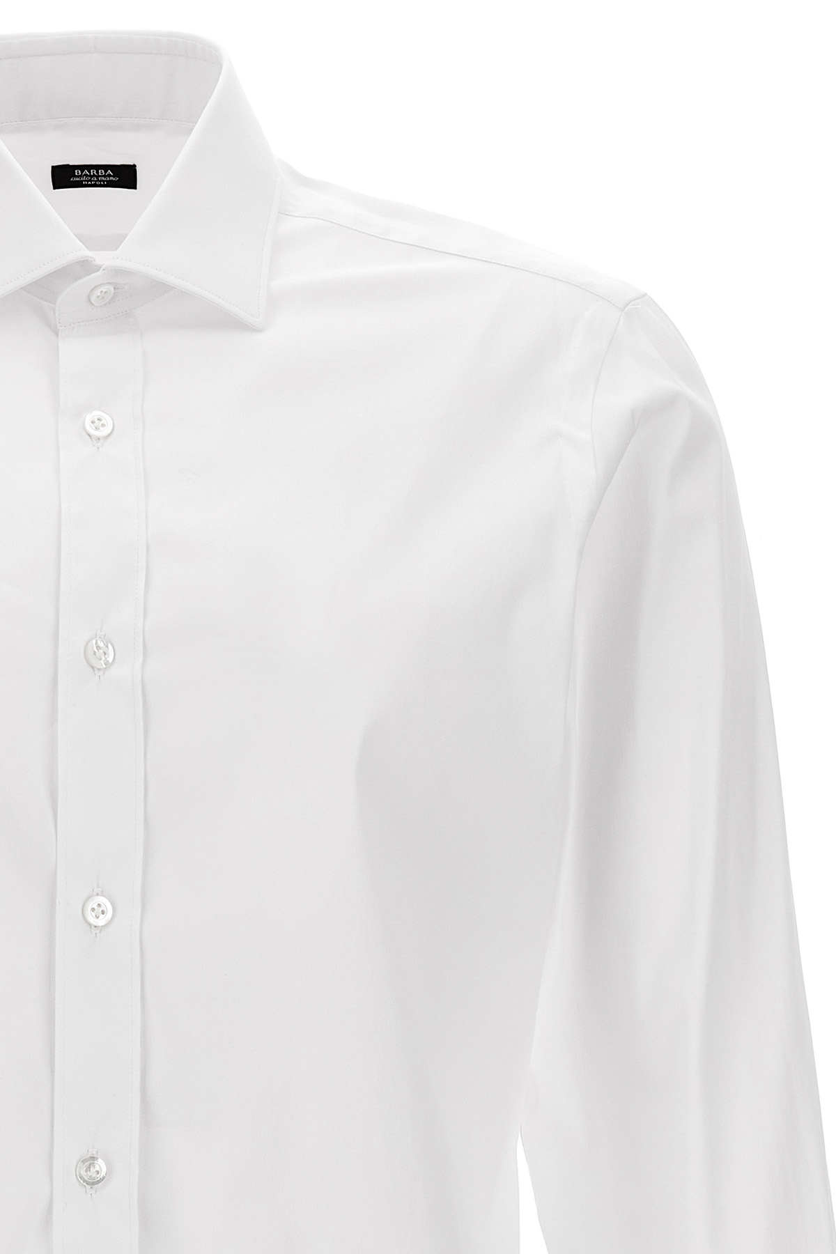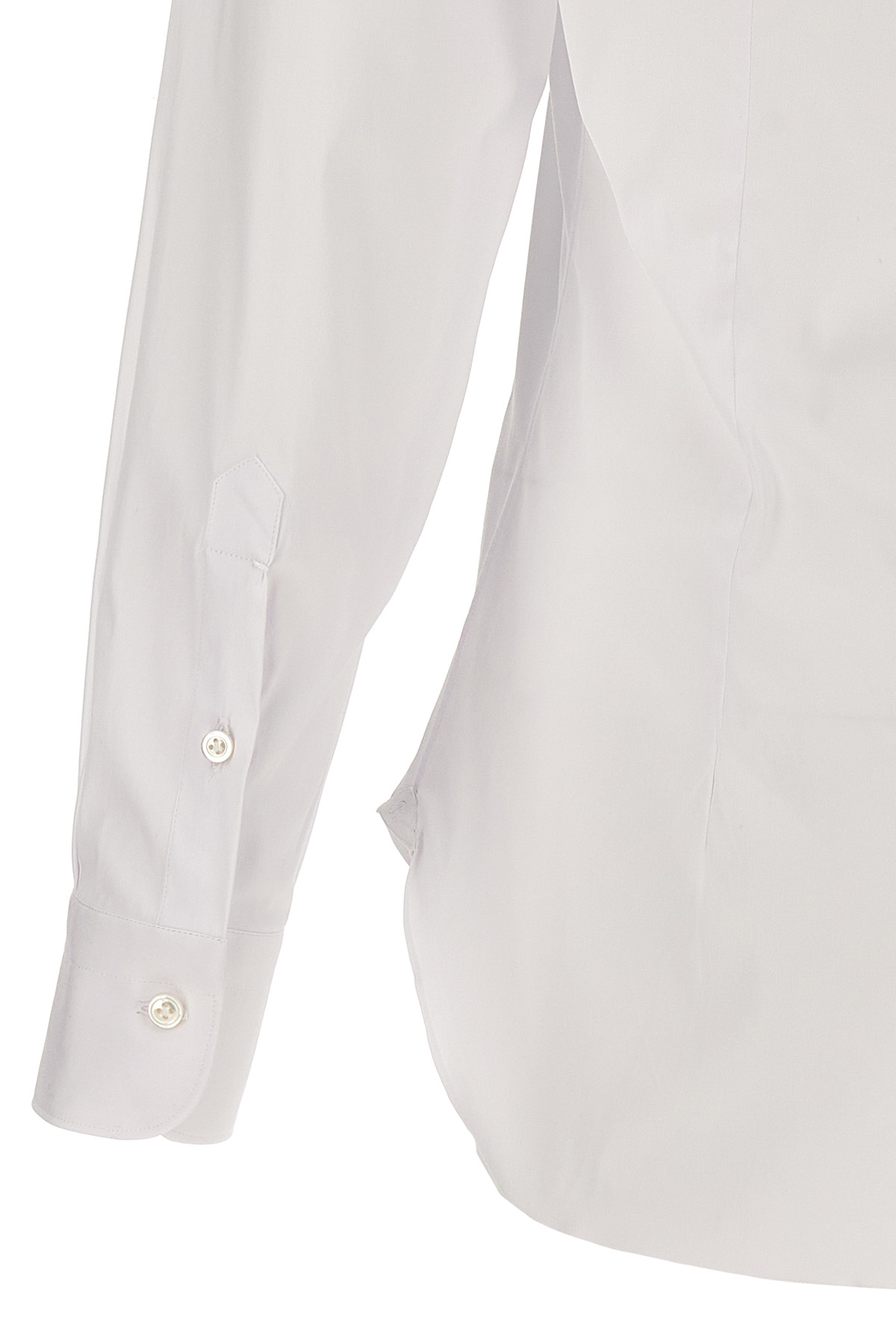 Stretch cotton blend poplin shirt with button closure, long cuffed sleeves.
