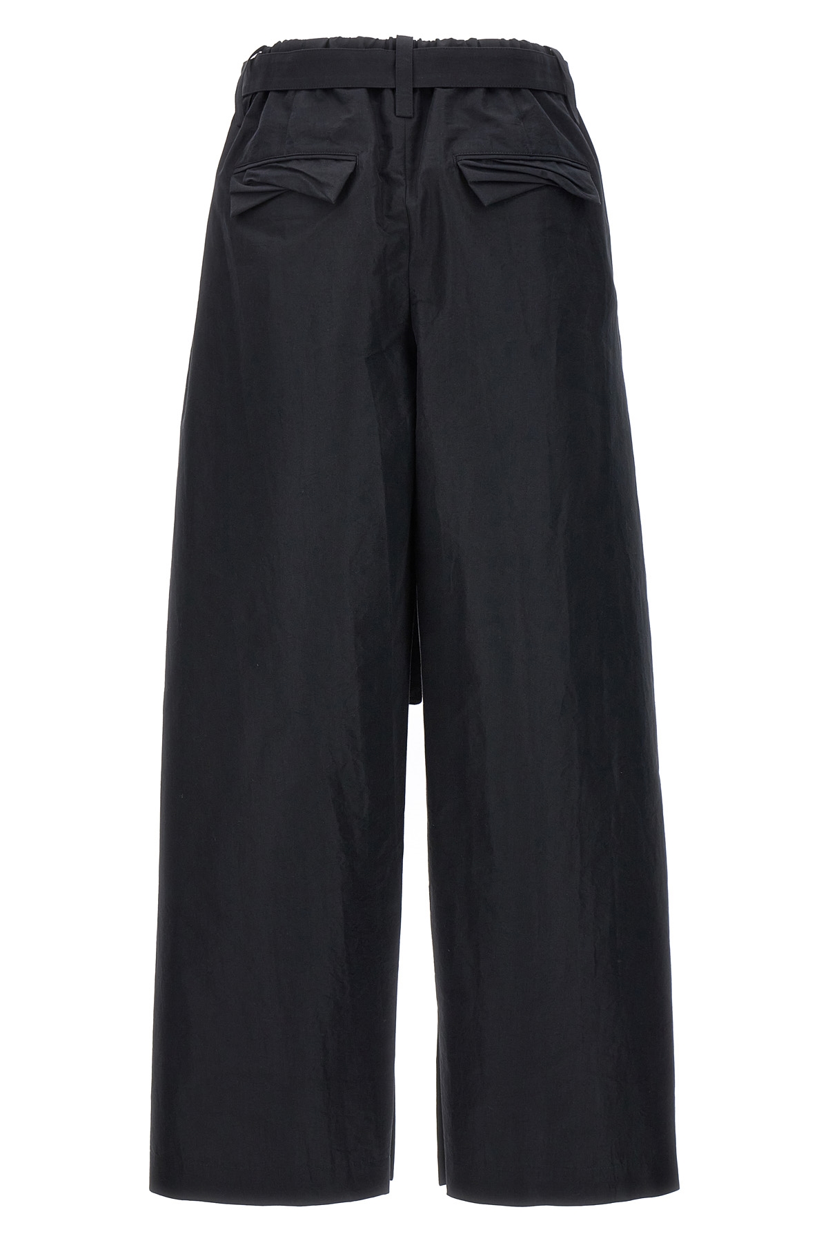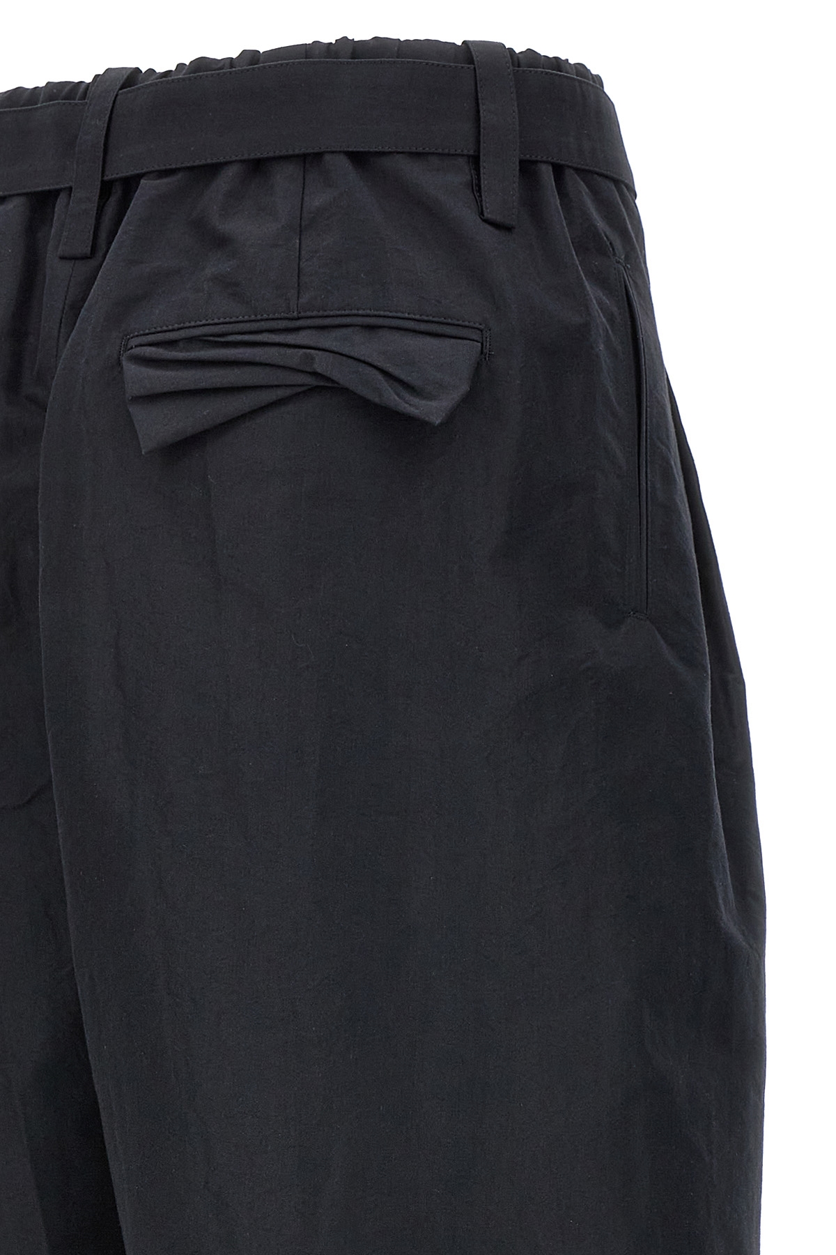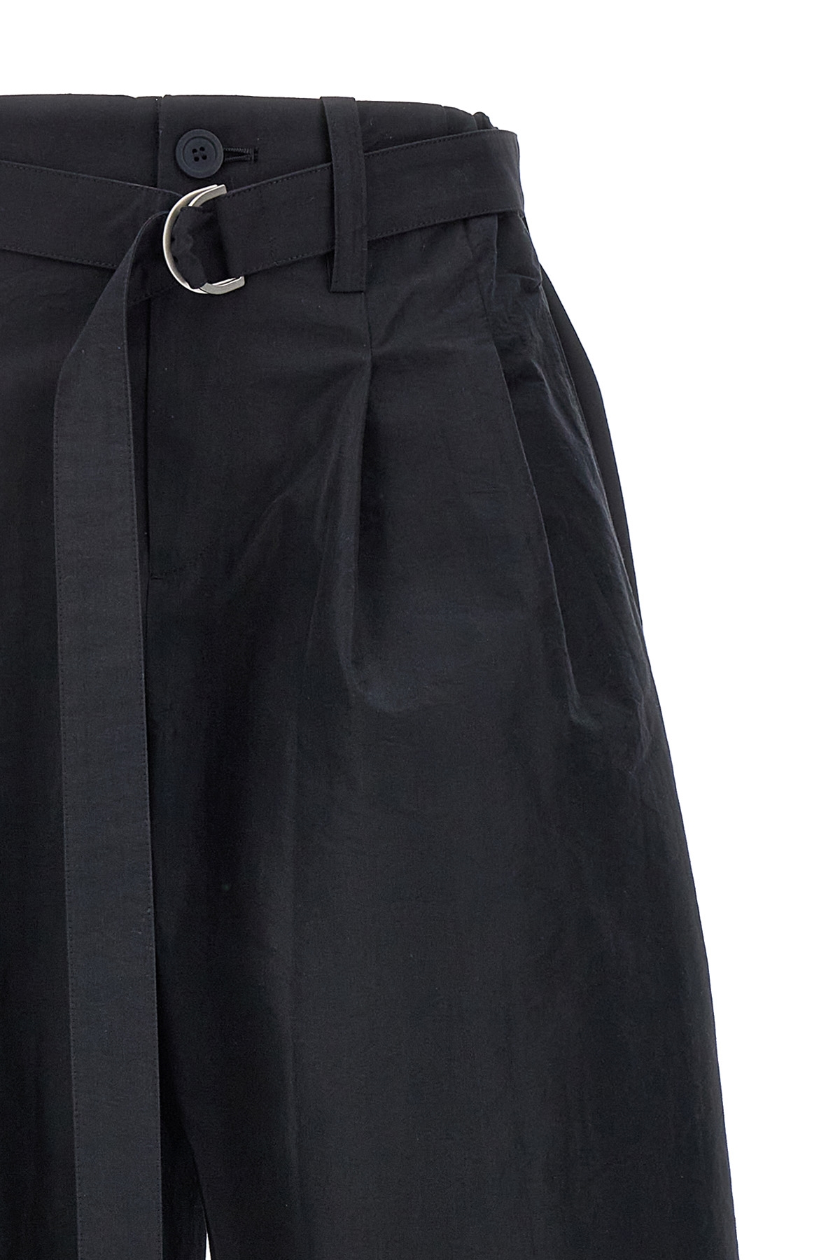 'Enfold' cotton blend pants, zip and button closure, waist strap, pockets.