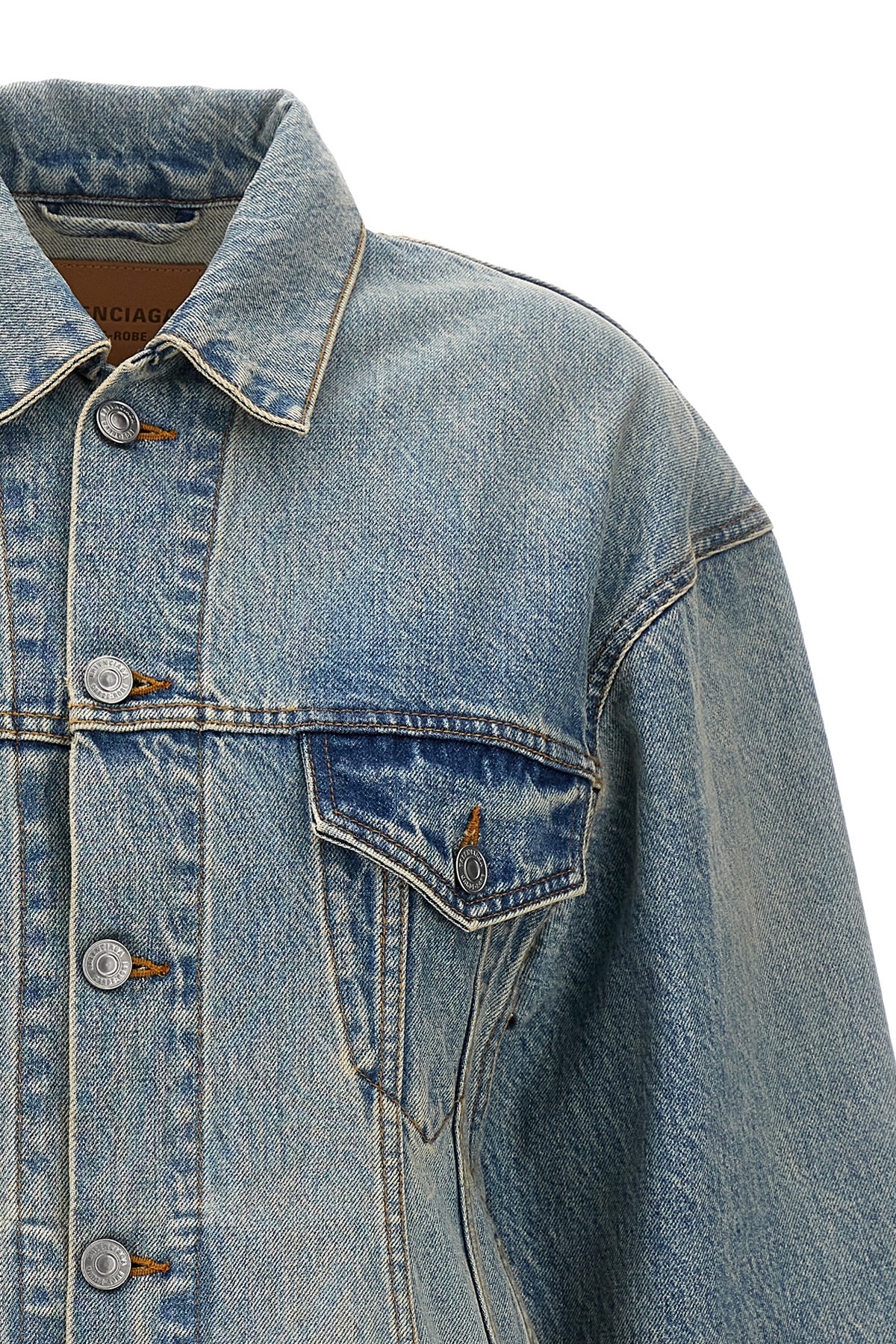 'Hourglass' Japanese denim jacket with button closure, tight waistband, pockets, long cuffed sleeves.