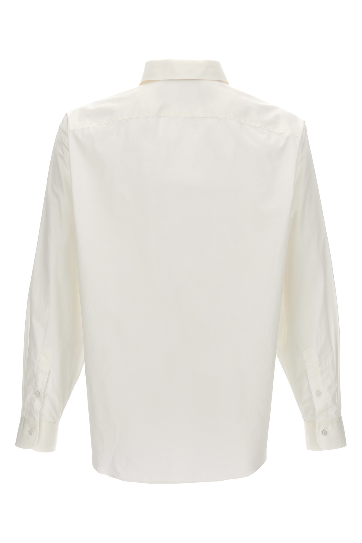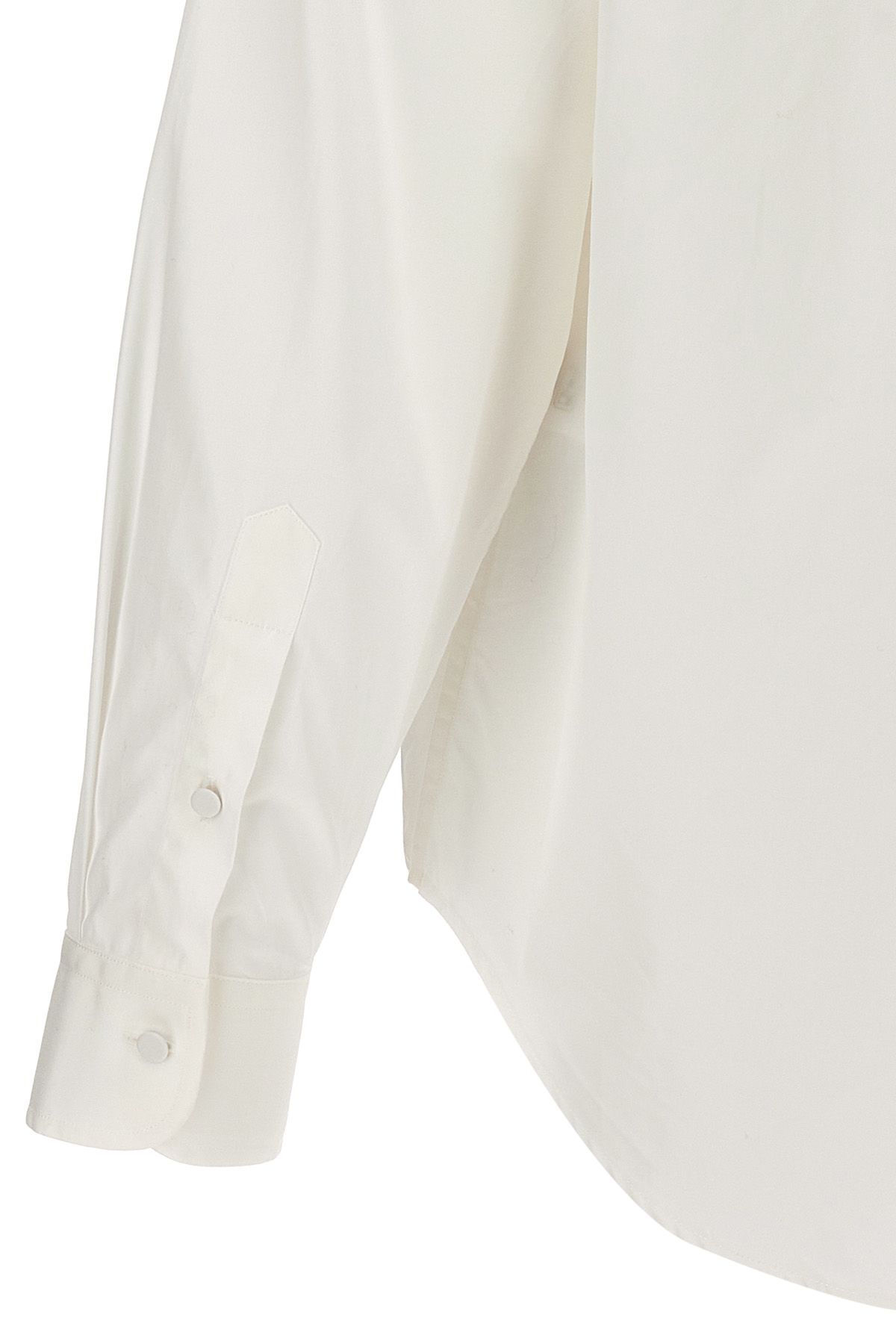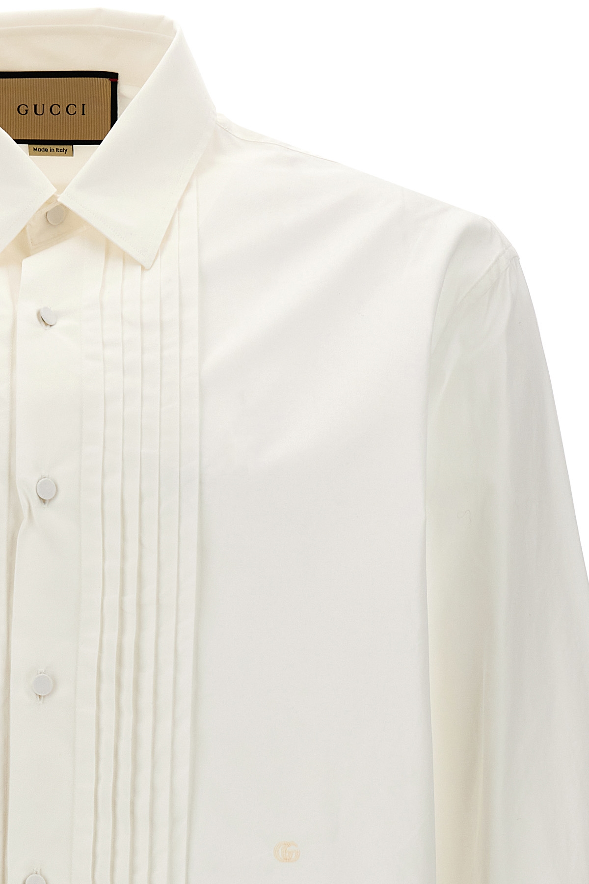 Cotton shirt with pleated plastron, button closure, long cuffed sleeves.