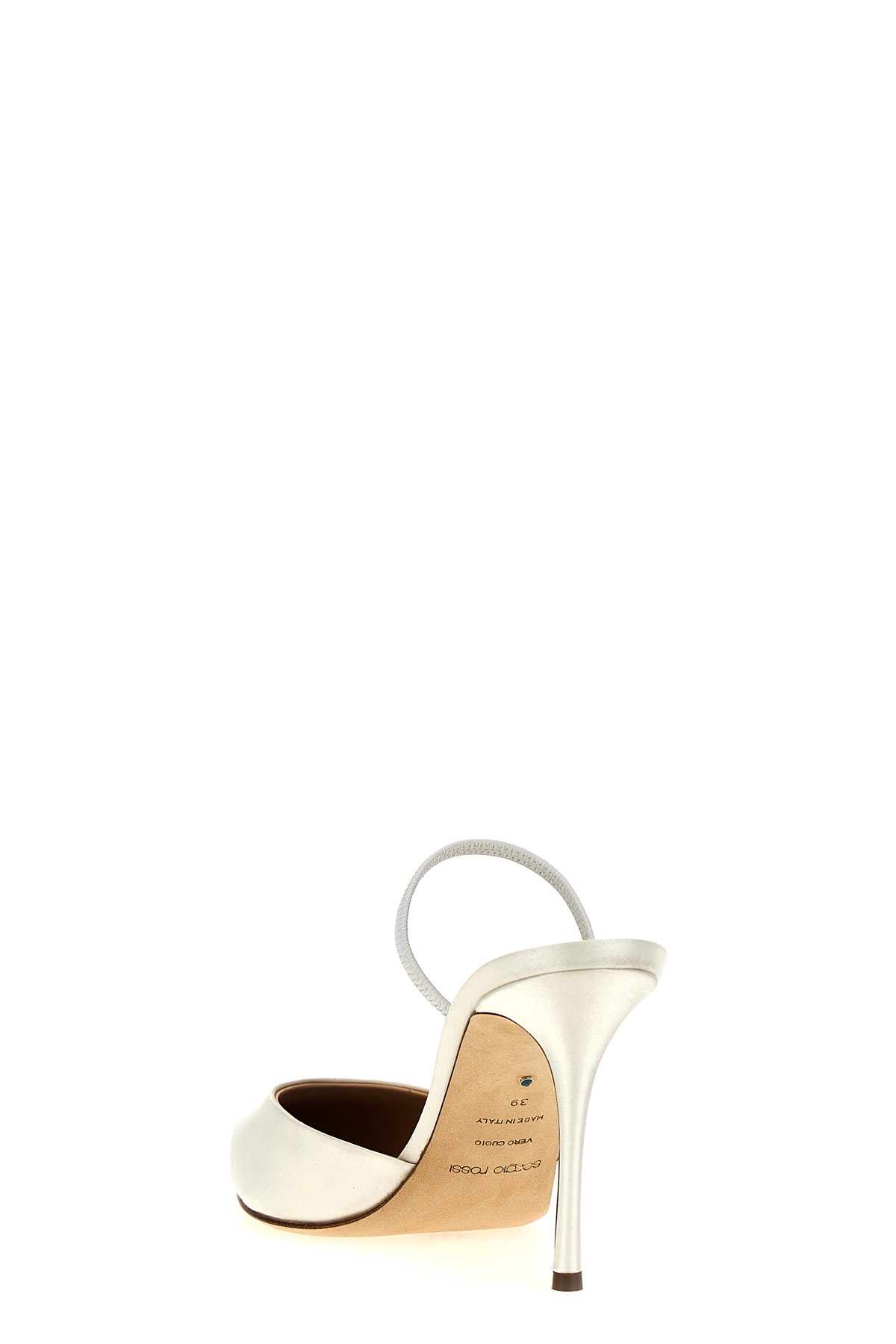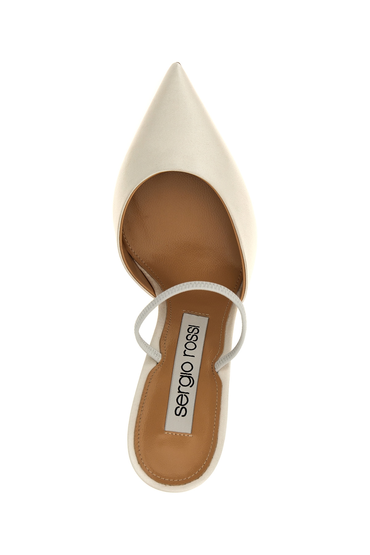'Godiva bridal' slingbacks in satin fabric, pointed model with elastic strap.