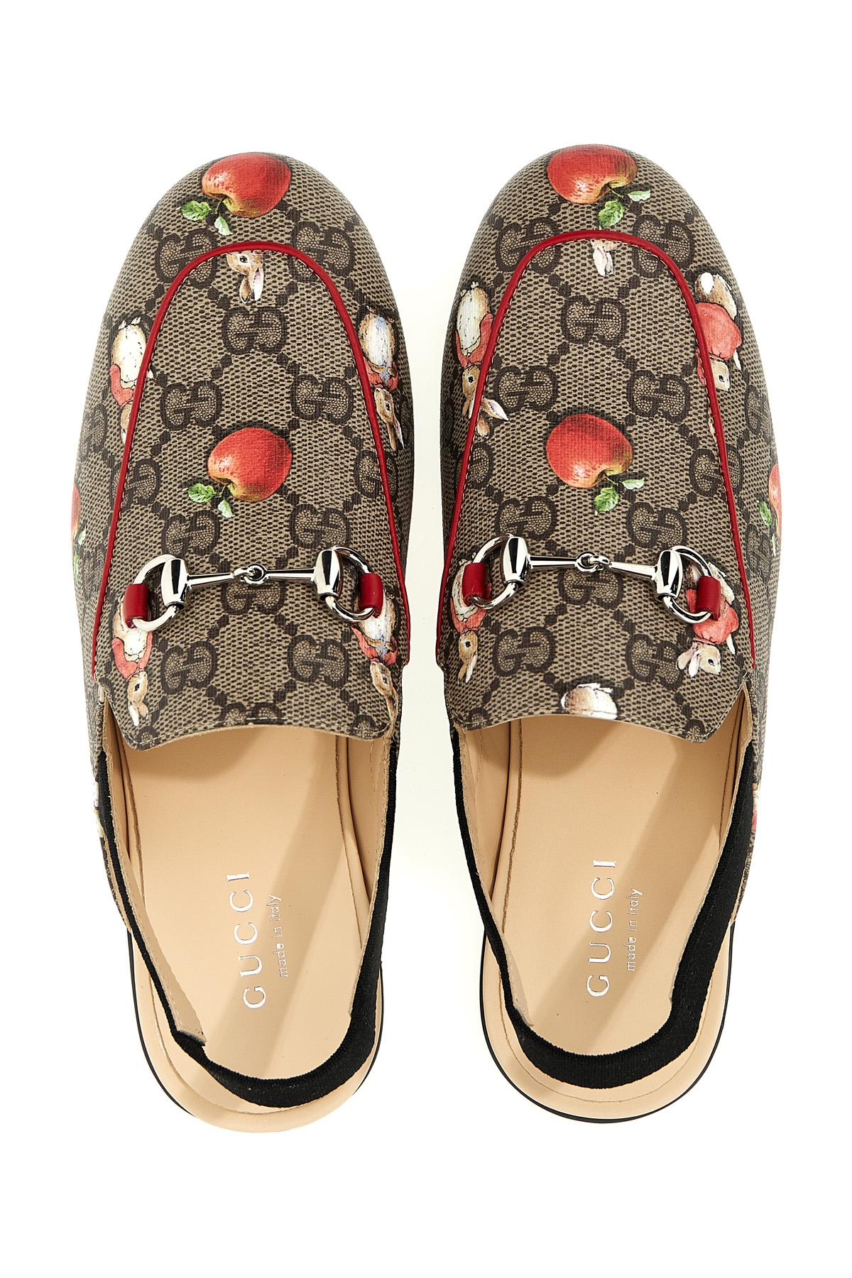 KIDS Peter Rabbit™ x Gucci 'Princetown' slippers in GG Supreme fabric with print, clamp detail, rubber sole.