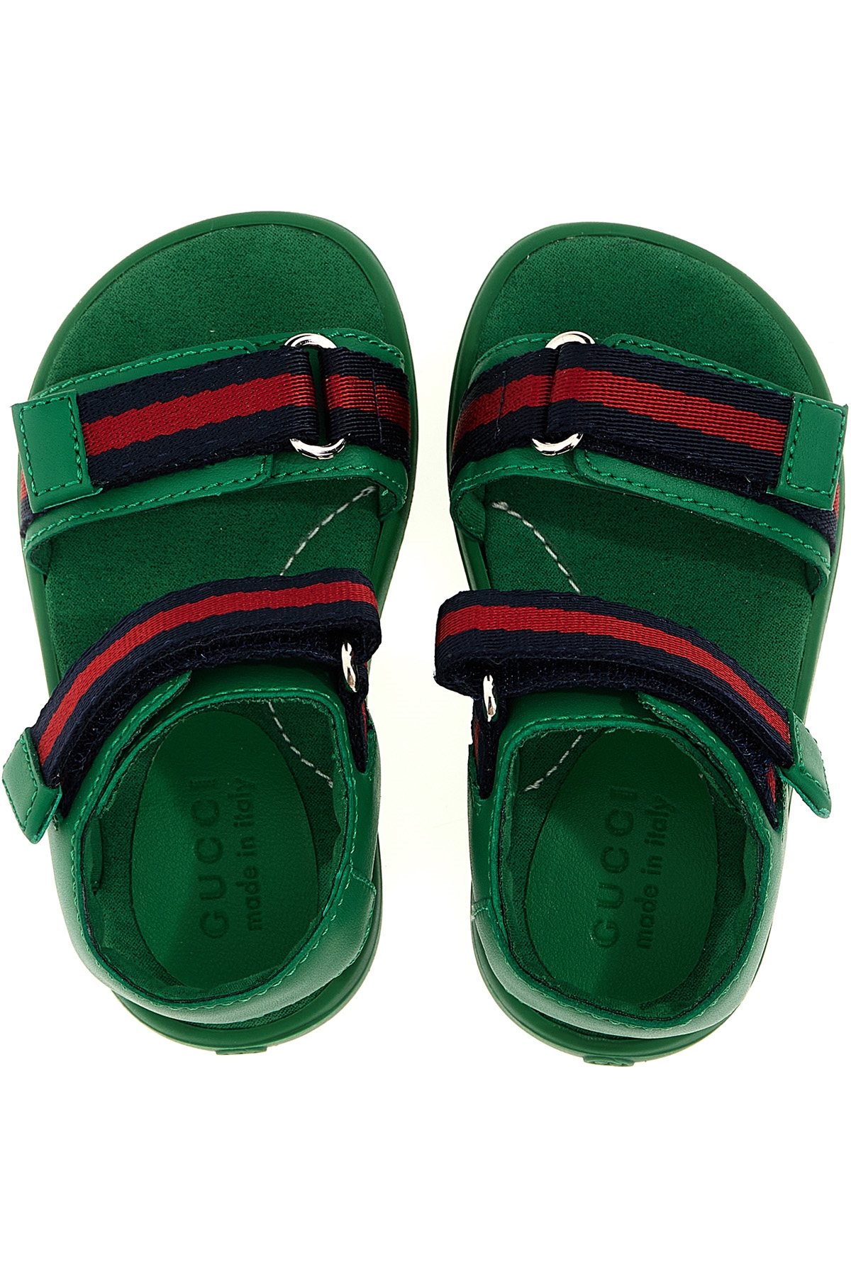 Leather sandals, adjustable bands with web tape, rubber sole.