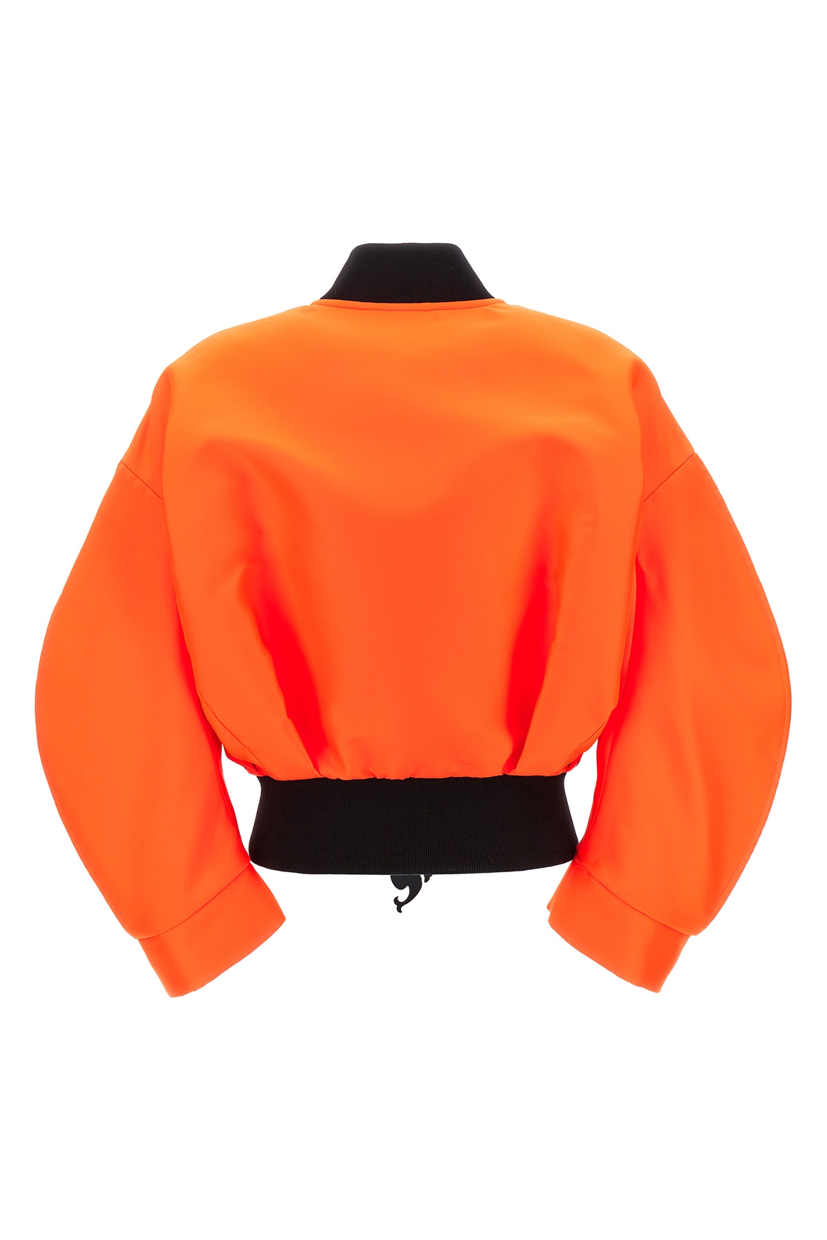 Neon bomber jacket with front logo tag, zipper closure, pockets, long and wide sleeves, and contrasting elastic, knitted collar and hem.