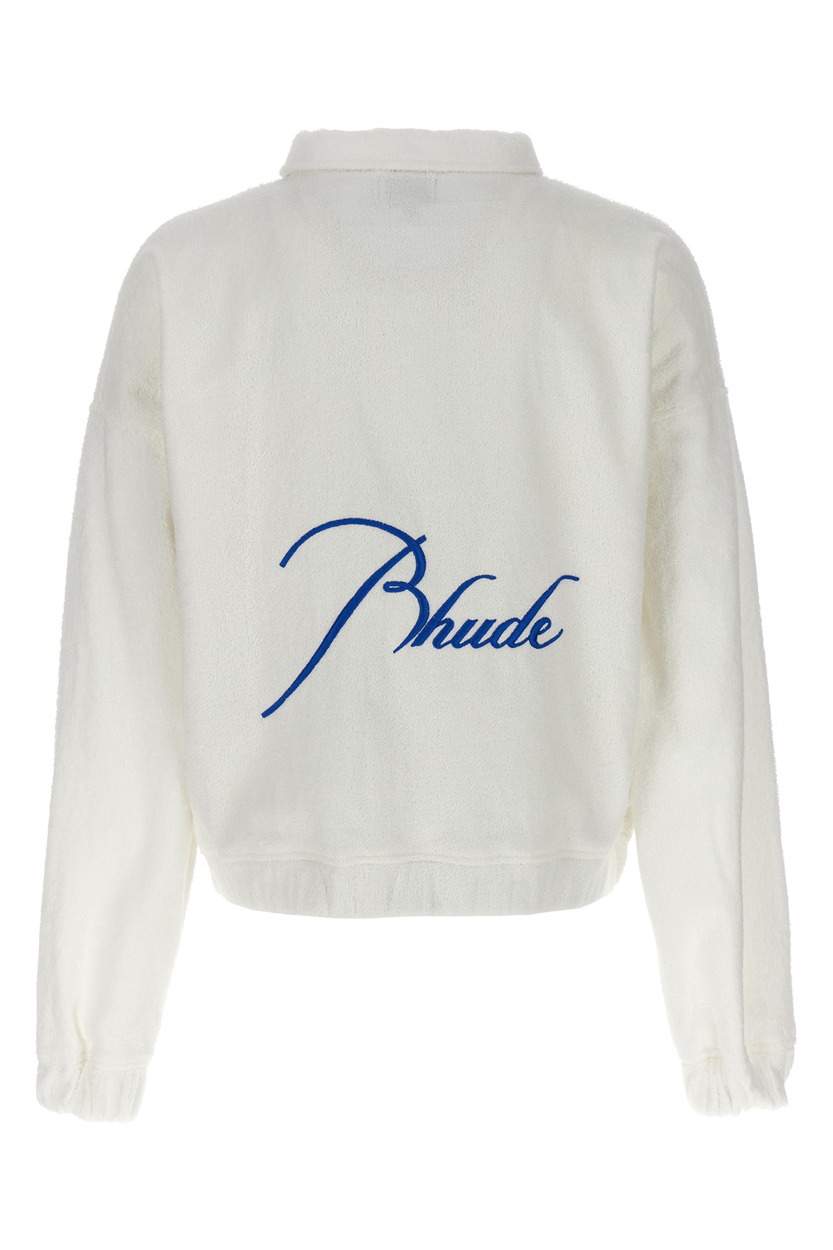 'Rhude Towel Rugby' sweatshirt in terry cotton-blend with logo embroidery on the front and back, buttons and collar, long sleeves with elastic cuffs, elastic pockets.