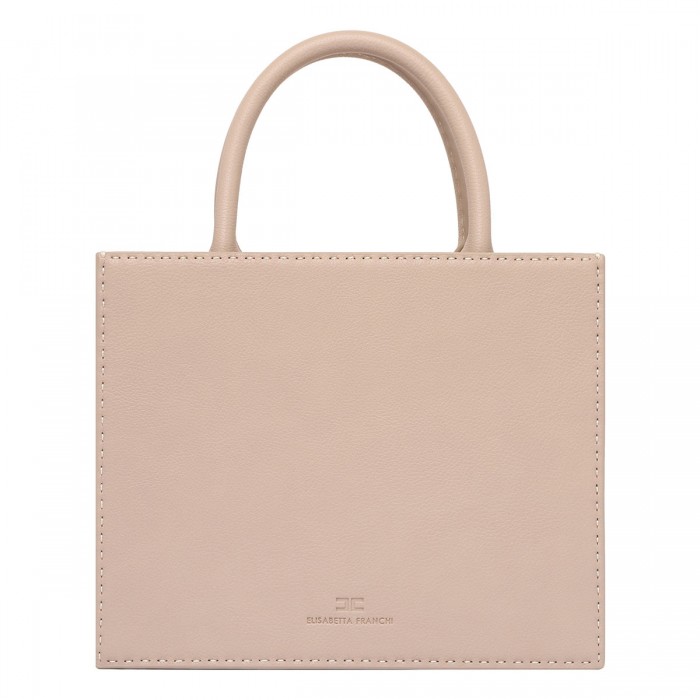 Beige small tote bag from Elisabetta Franchi featuring logo embossed, double top handle, detachable and adjustable shoulder strap, zip fastening, lining and internal pocket.