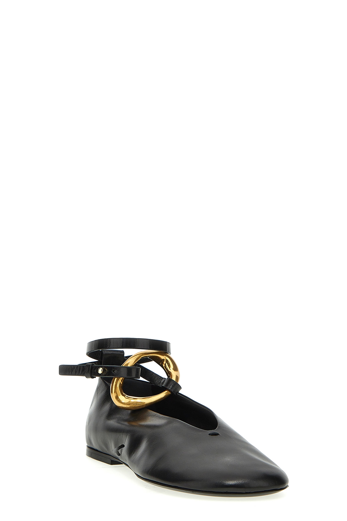 Leather ballet flat, ankle strap.