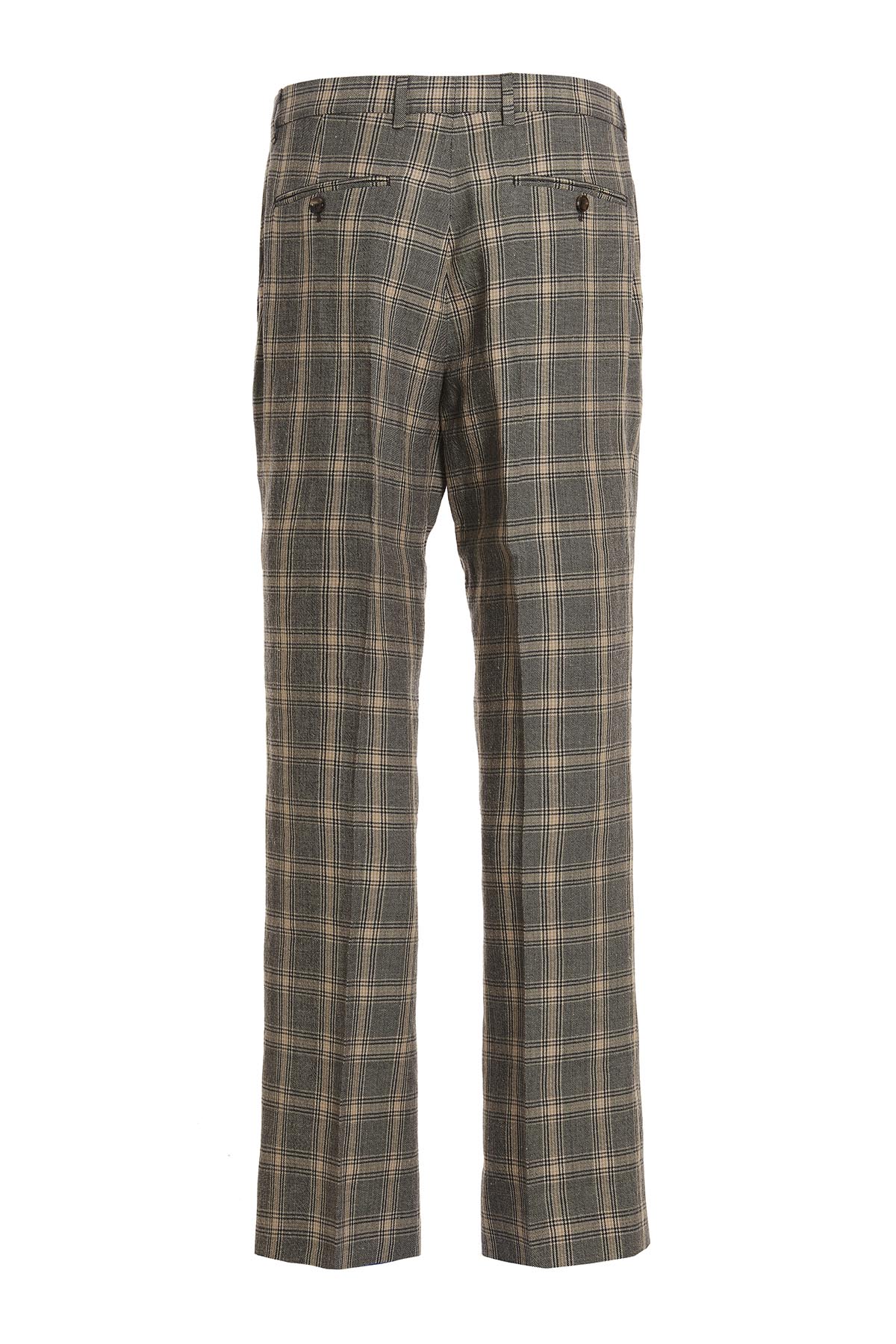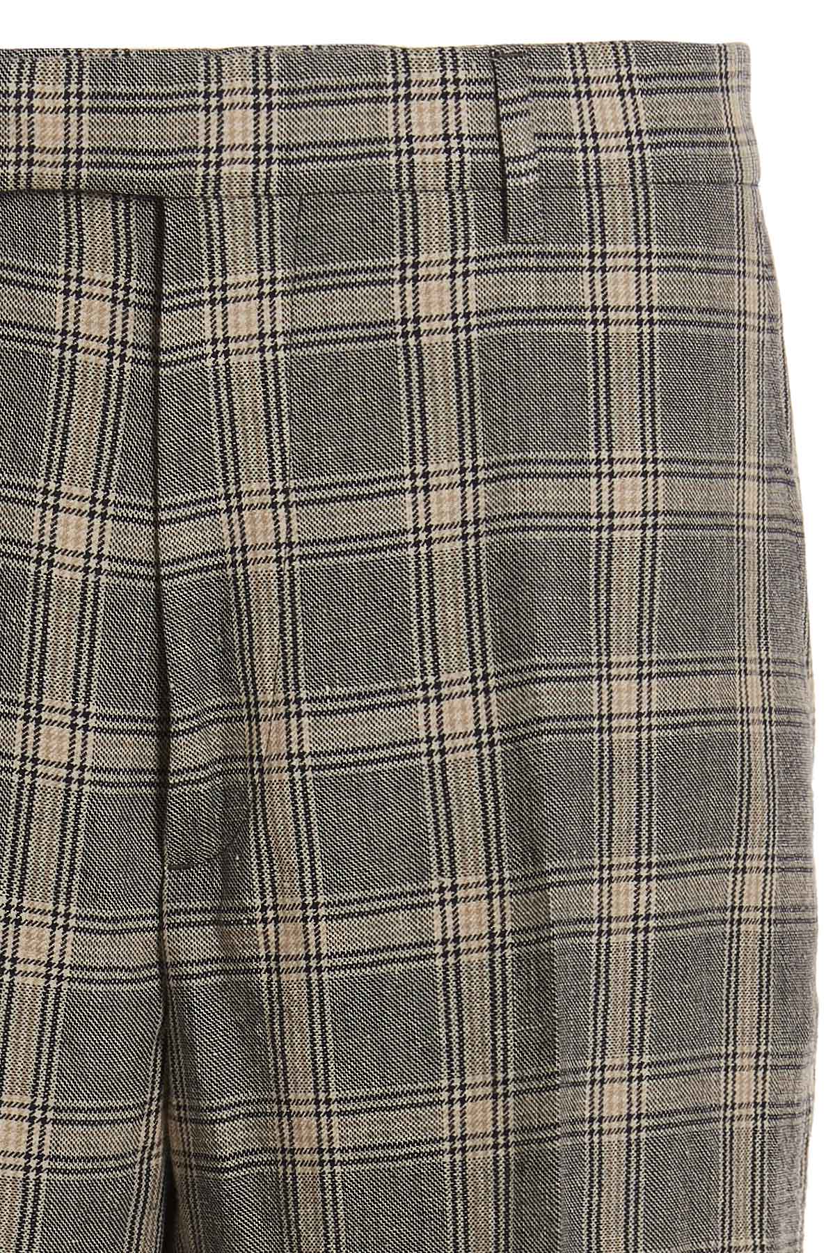 Linen and wool blend Prince of Wales print pants, featuring a zipper, hook-and-eye and button closure, pockets, a straight leg with a central crease.