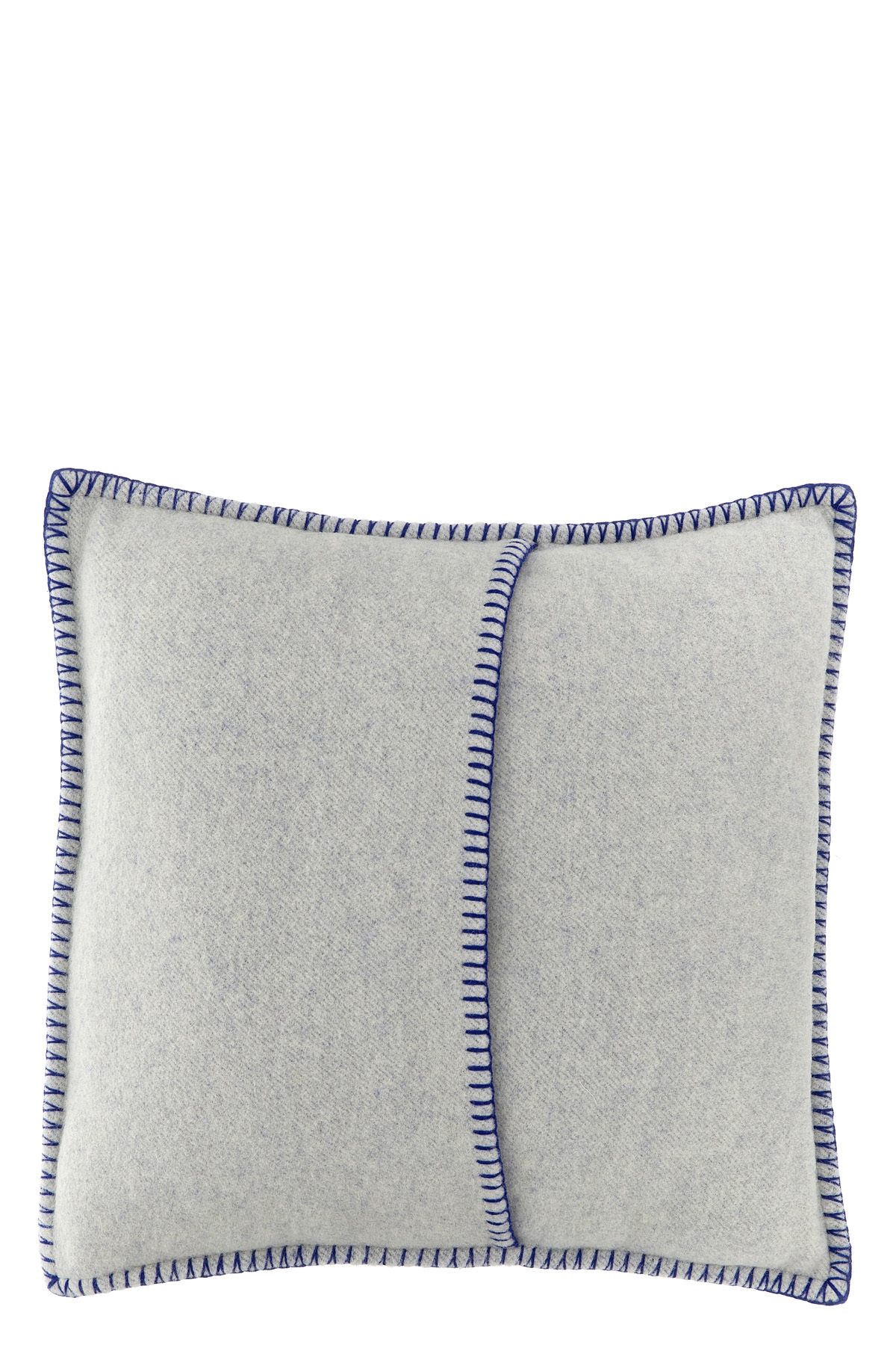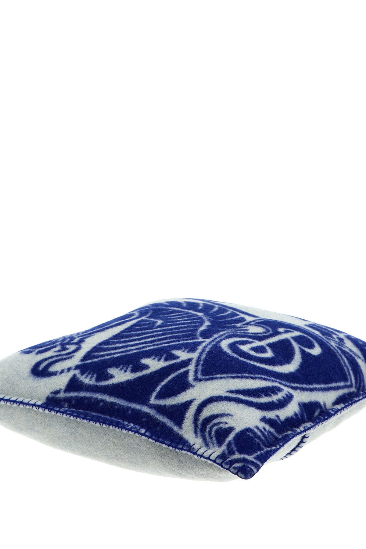 Wool cushion with 'Equestrian Knight Design' pattern, festoon stitch at the edges.