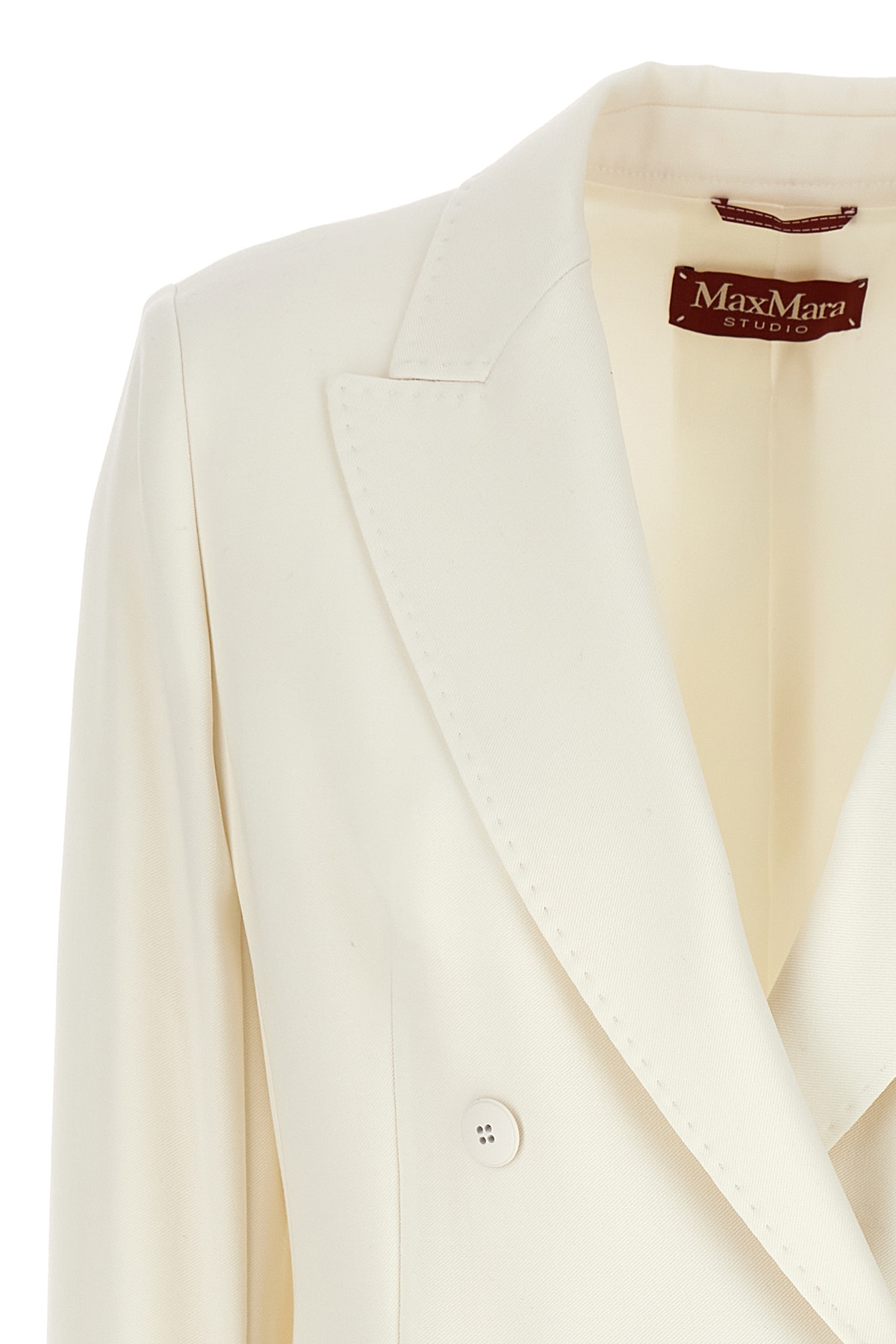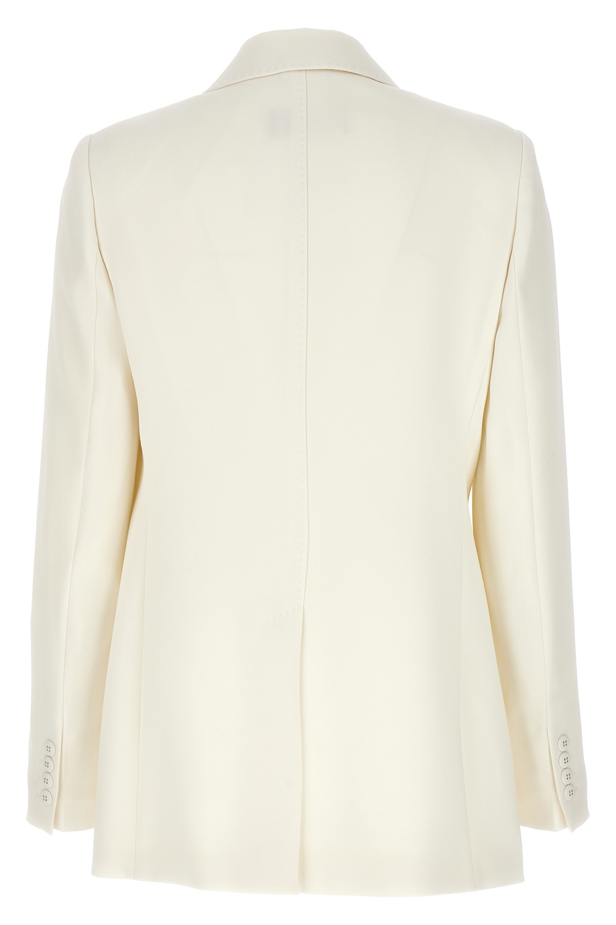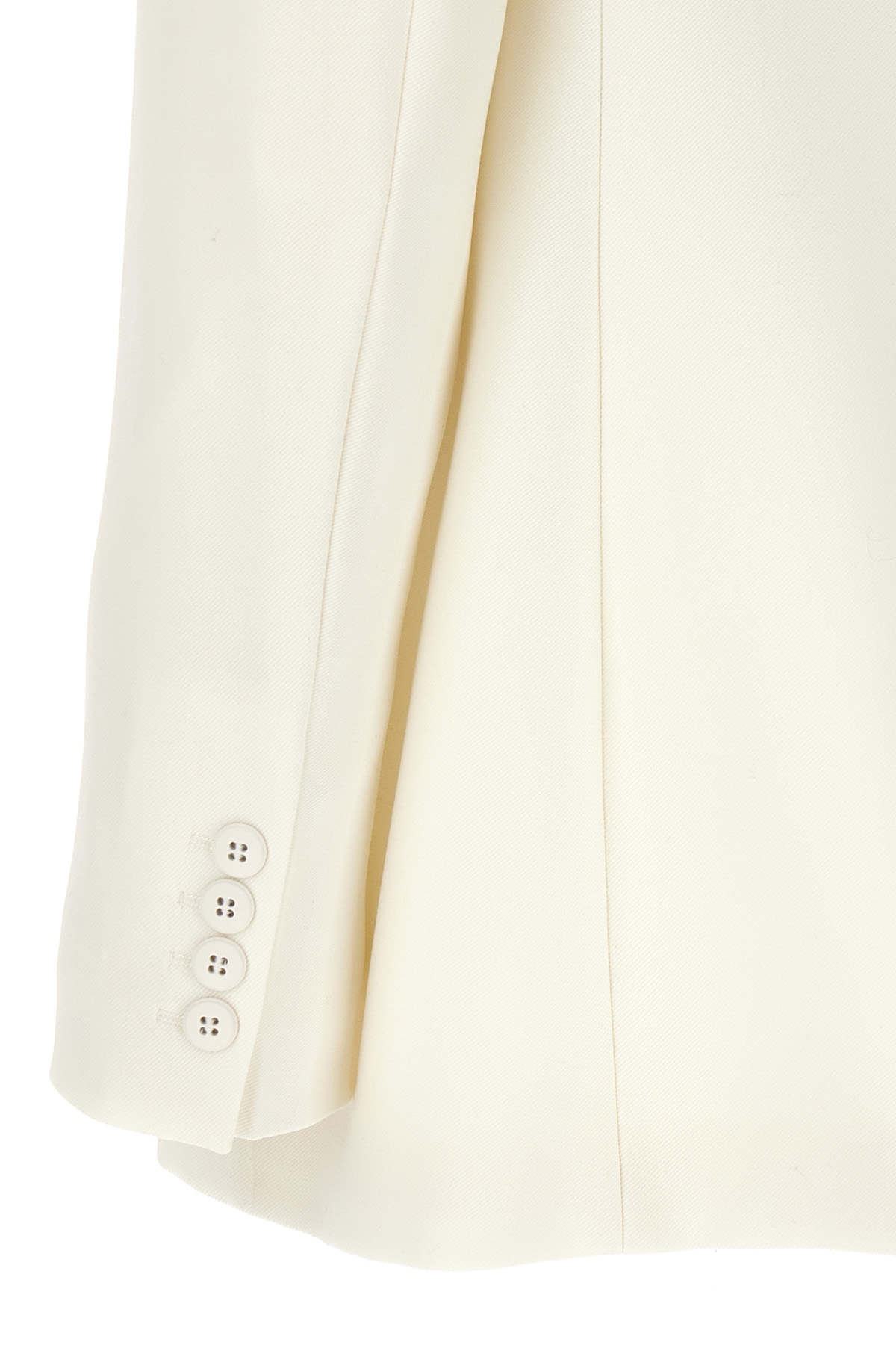 'Caucaso' double-breasted blazer in wool crepe satin with button closure, pockets, long sleeves, back vent.
