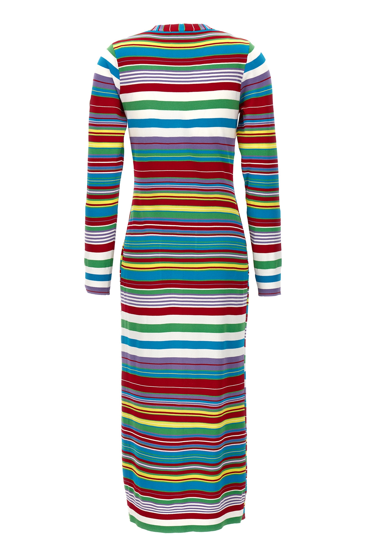 Long striped stretch viscose cardigan with button closure, pockets, long cuffed sleeves.