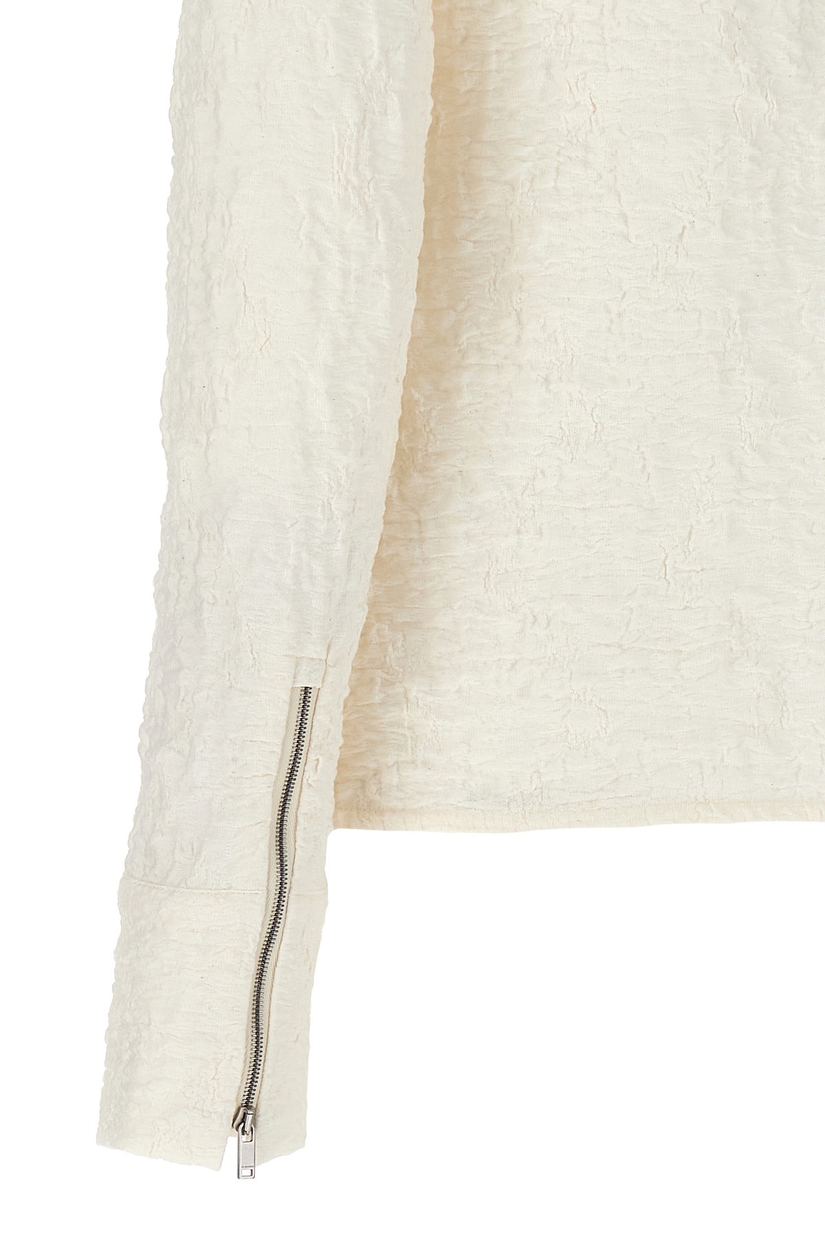 Embossed cotton shirt with zip closure, long cuffed sleeves.