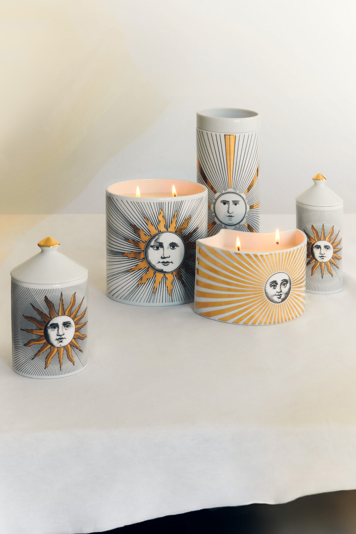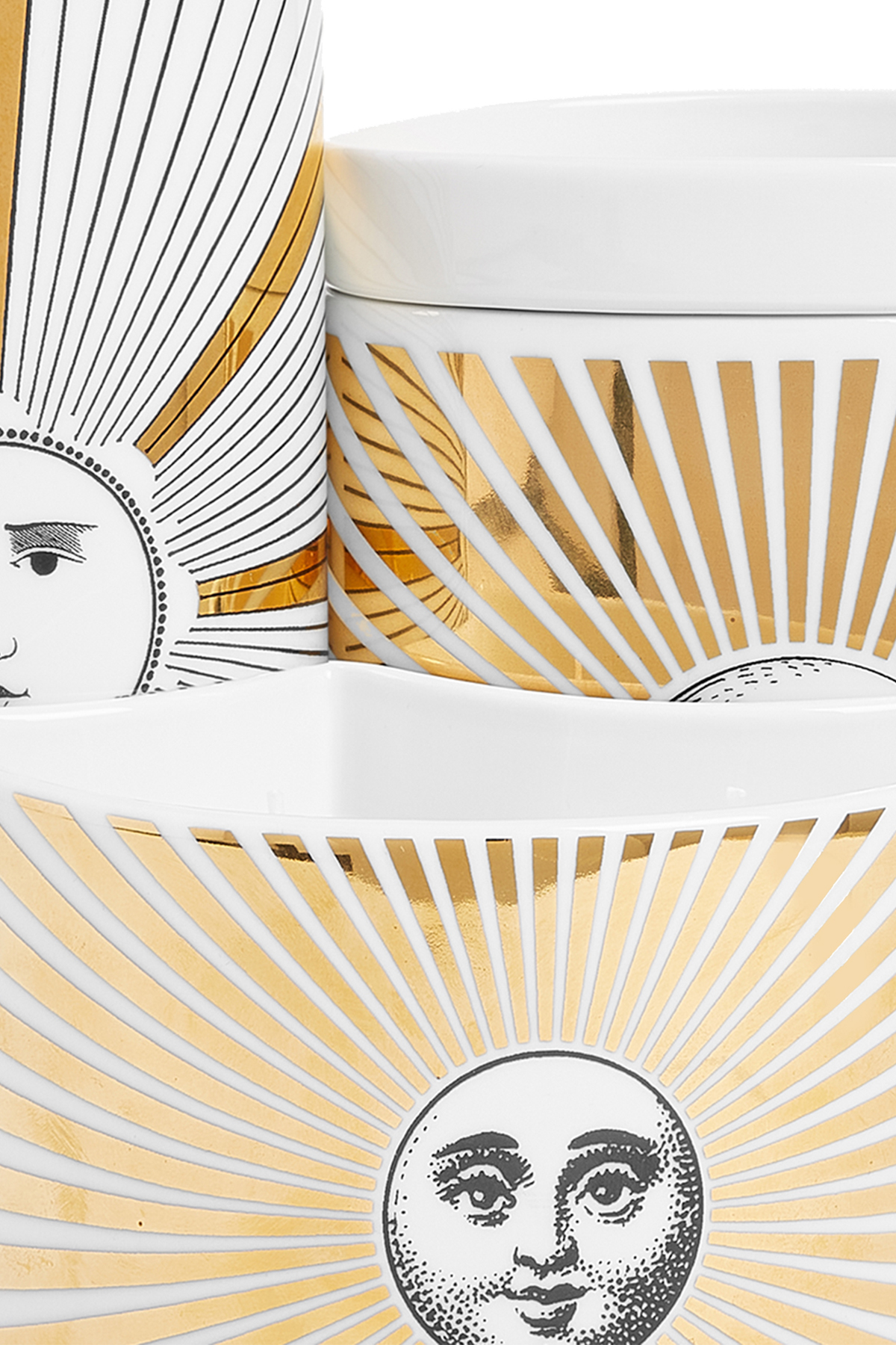 The essential and refined trait of Fornasetti transforms the candles with the iconic Soli decoration into unmistakable and timeless objects.