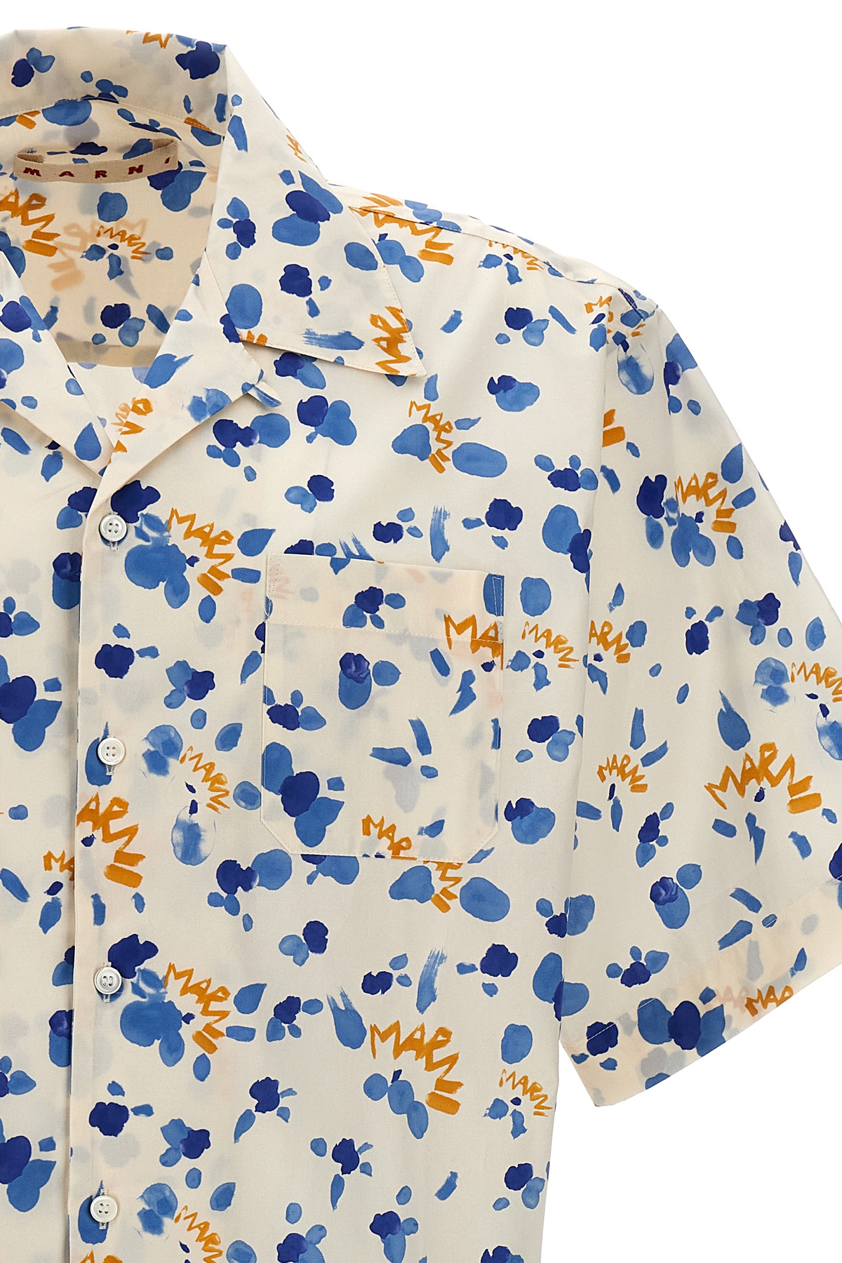 'Marni Dripping' cotton shirt with all-over print, front pocket, button closure, short sleeves.