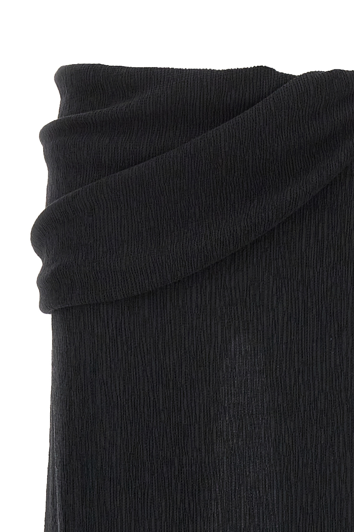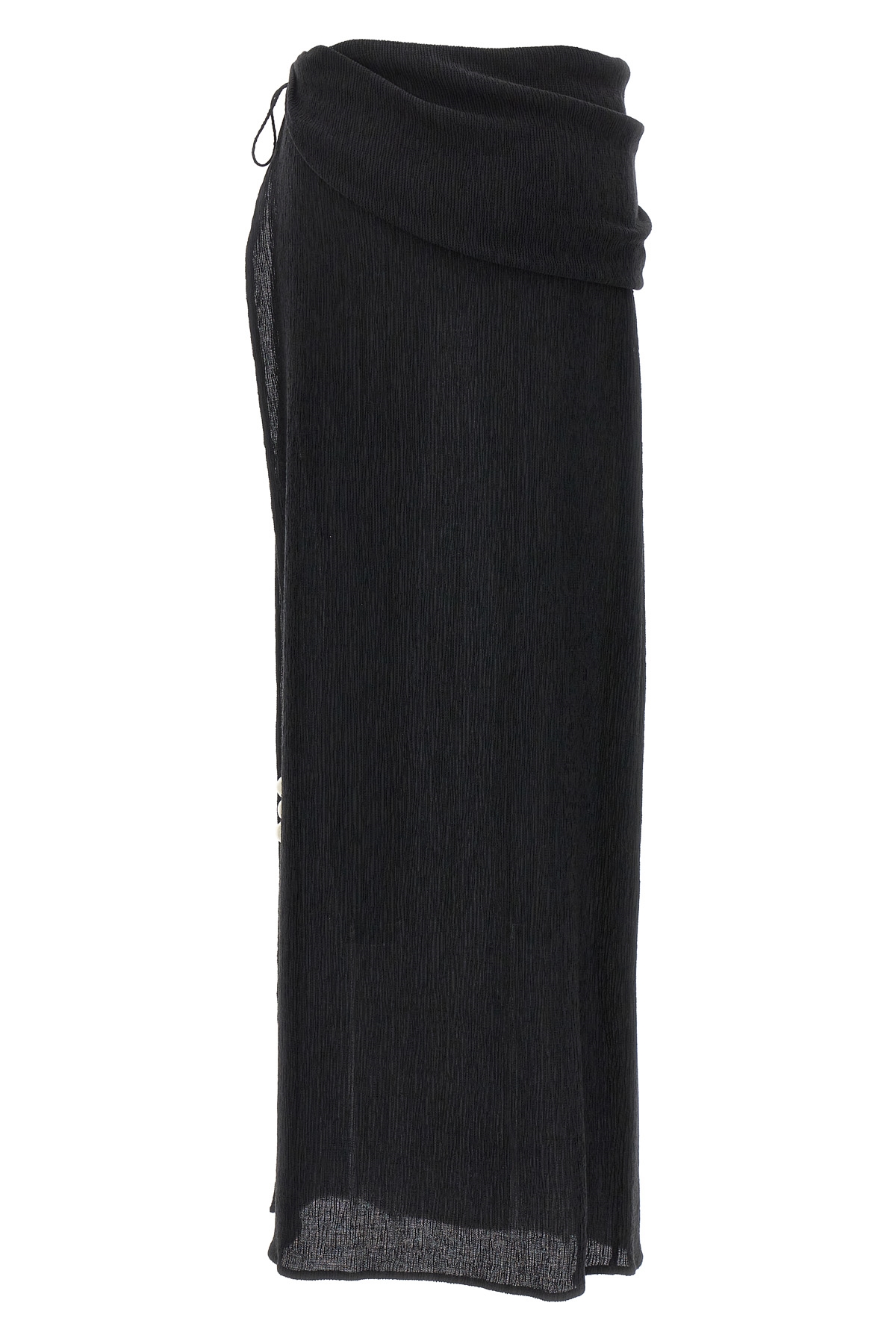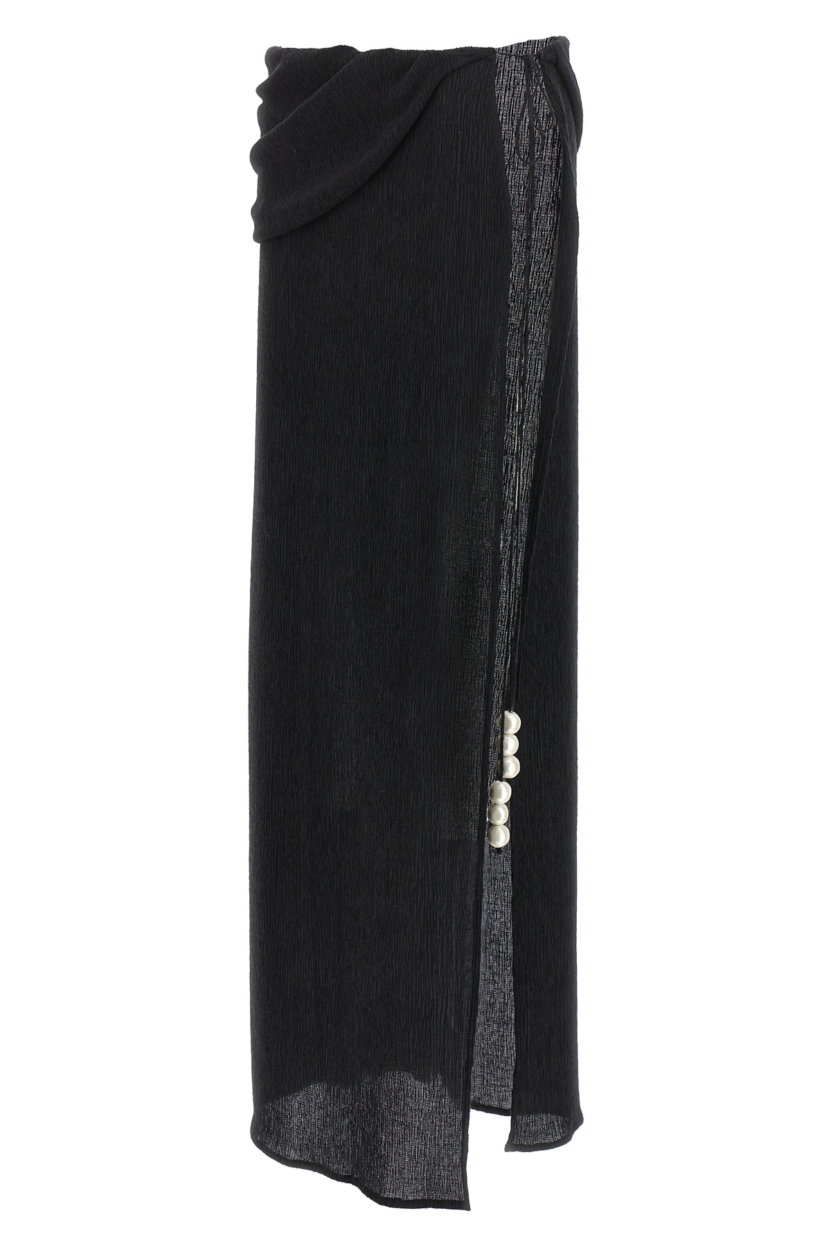'03' long skirt with maxi side split in textured fabric, lace detail with maxi pearls.