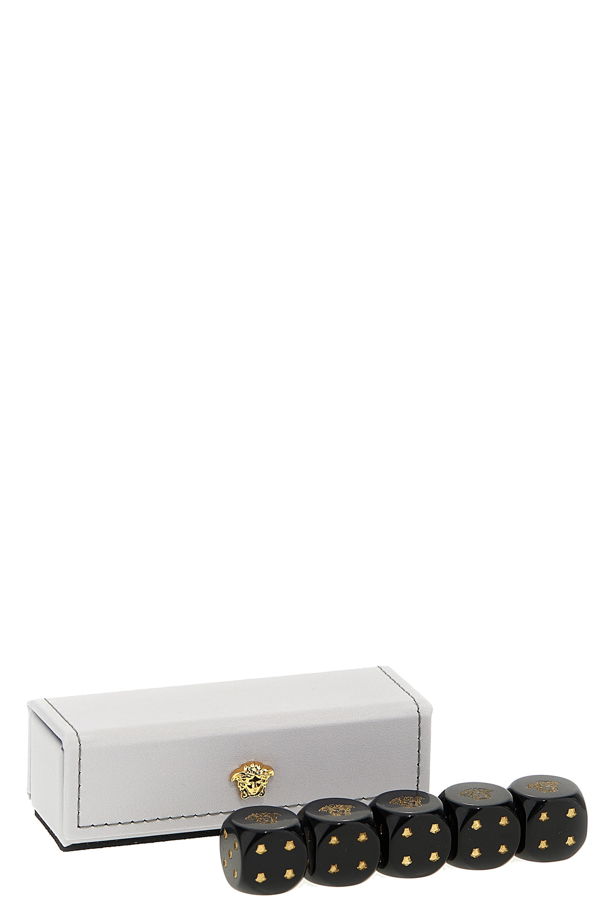 The set, consisting of 5 dice and a leather case, is enriched by a Medusa stud detail on the folding magnetic closure.