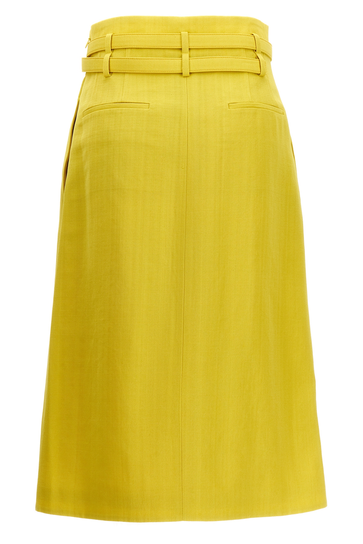 '66' skirt in viscose and silk blend, side zip closure, matching belt at the waist, pockets, front split.