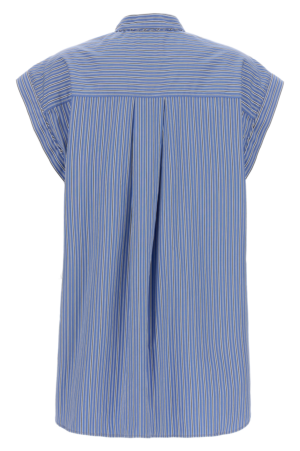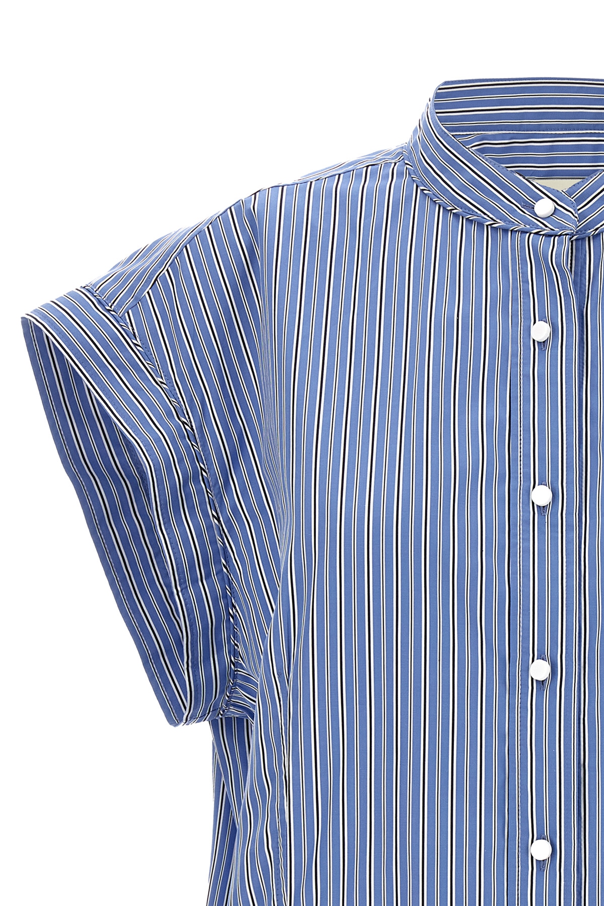 'Reggy' striped cotton shirt, crew neck, short sleeves with flounces, button closure.