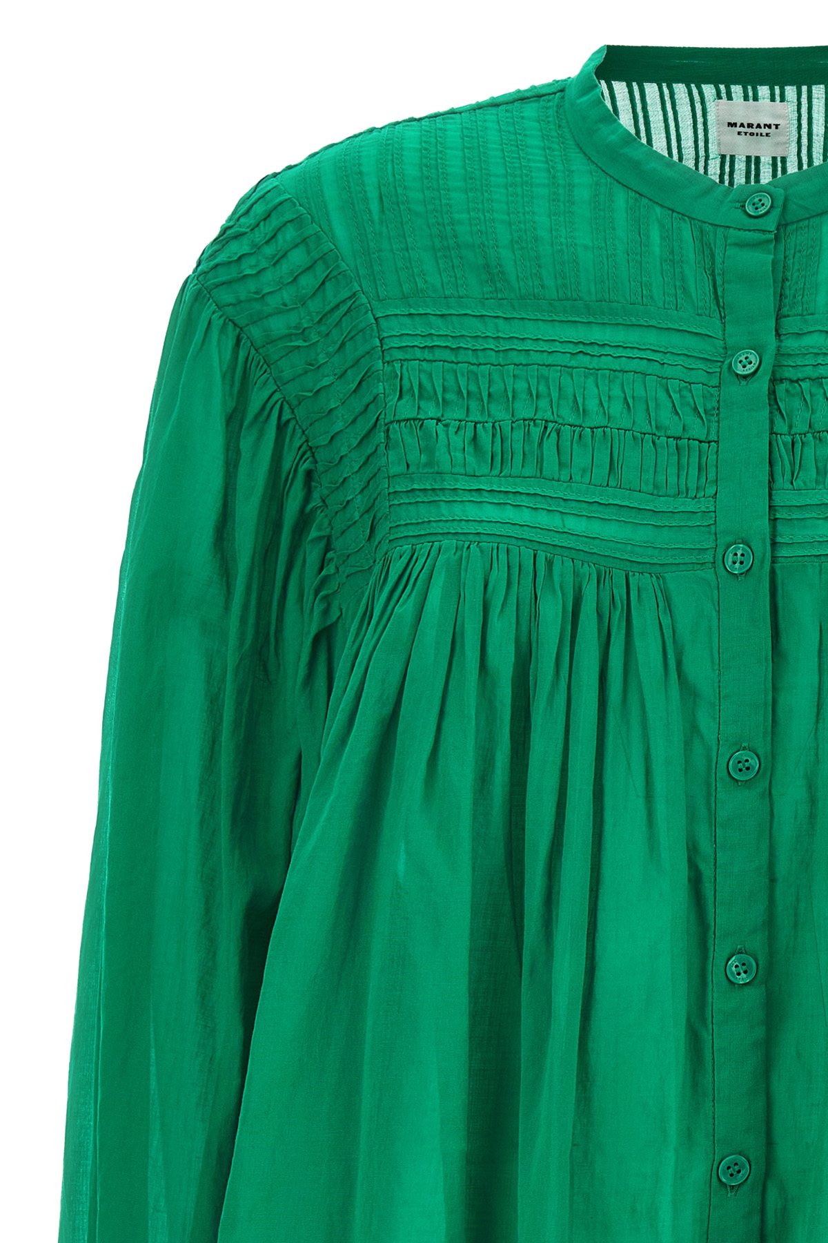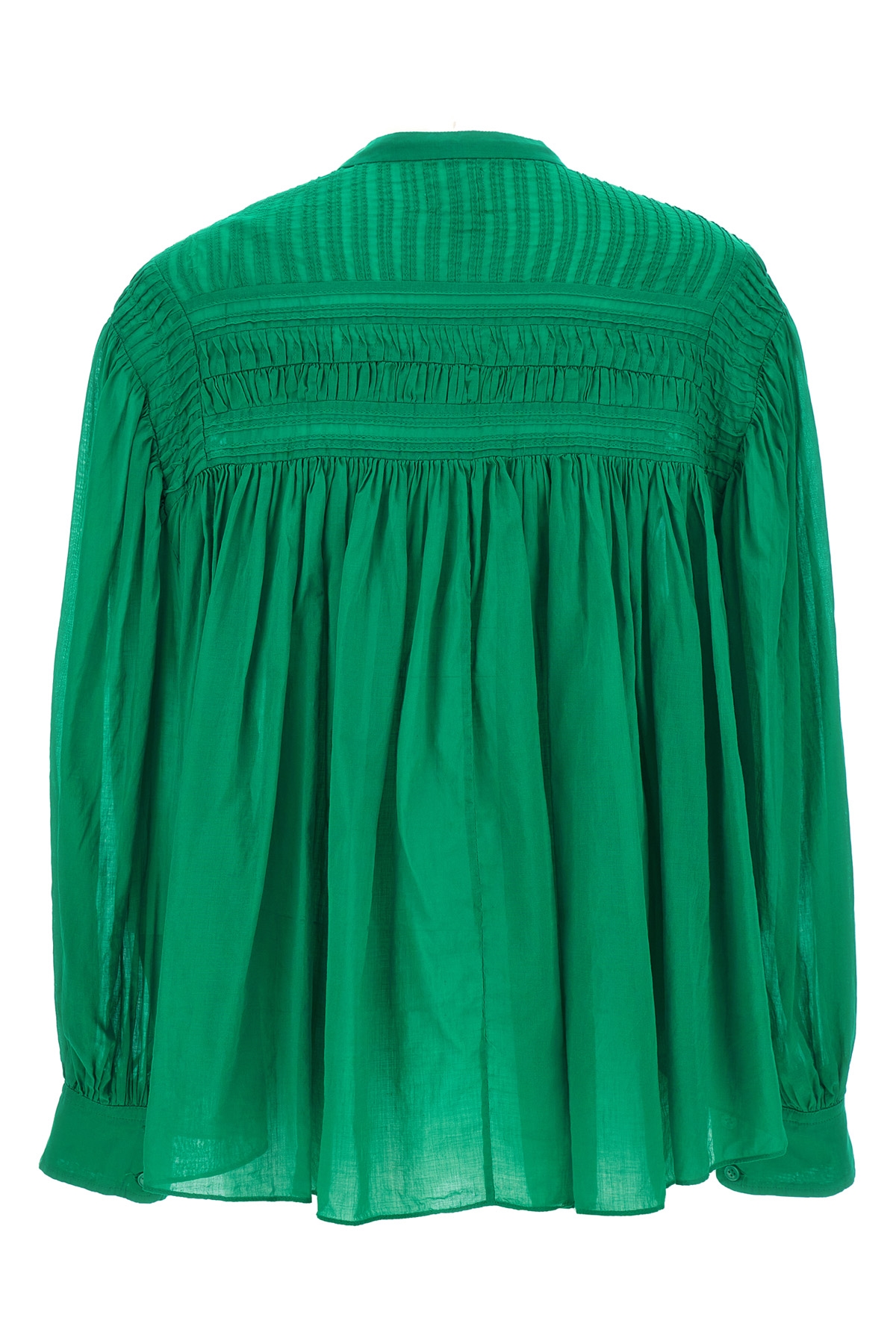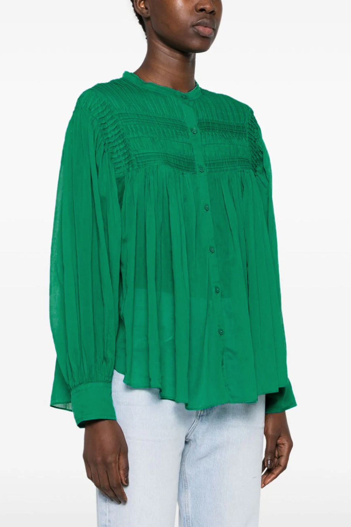 'Plalia' cotton shirt with ruffles and smock stitches, crew neck, long sleeves, button closure, long cuffed sleeves.