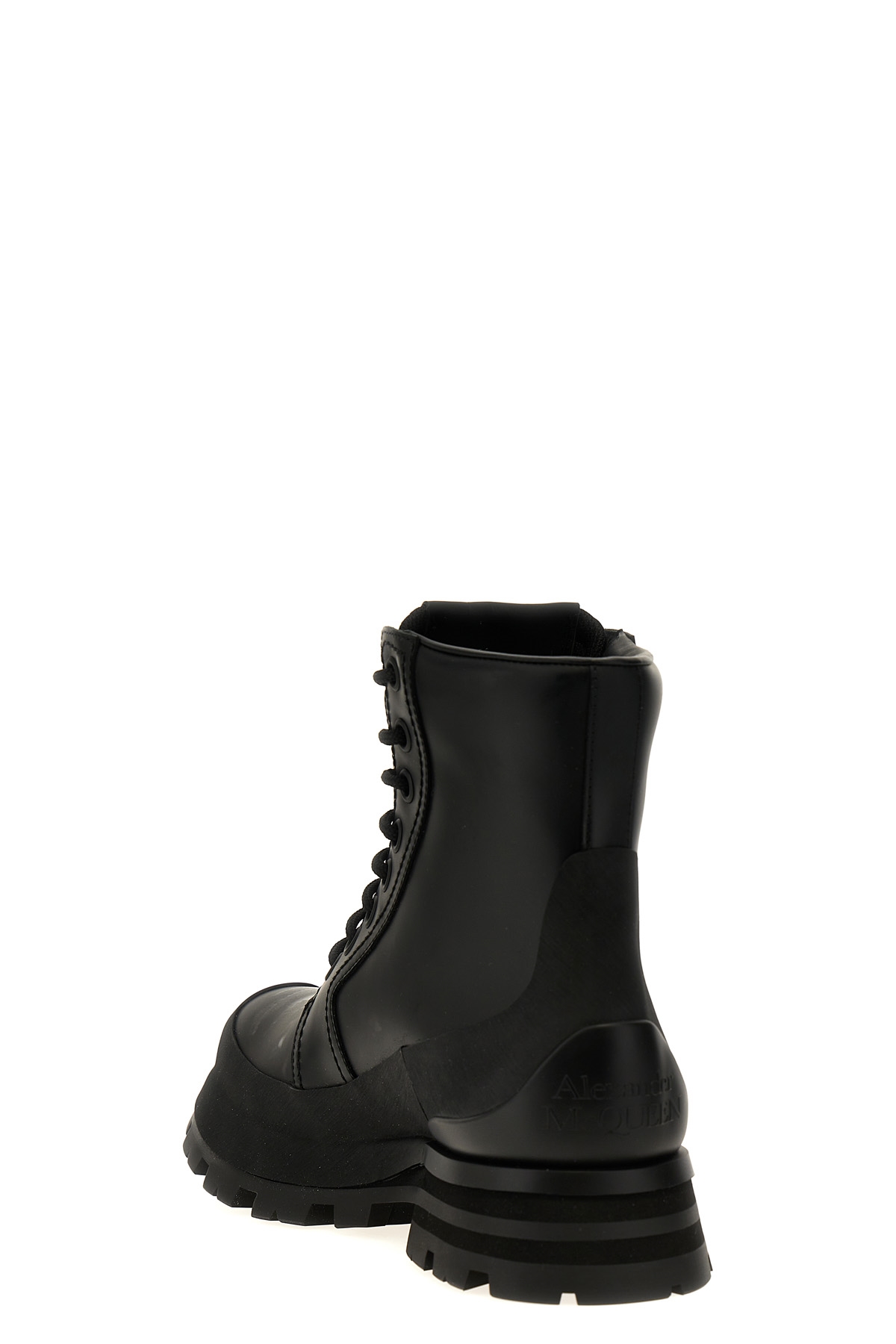 'Wander' rubberized leather ankle boots with laces, galoshe-style rubber detail with rubber sole.
