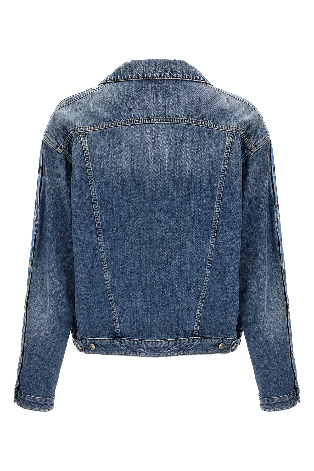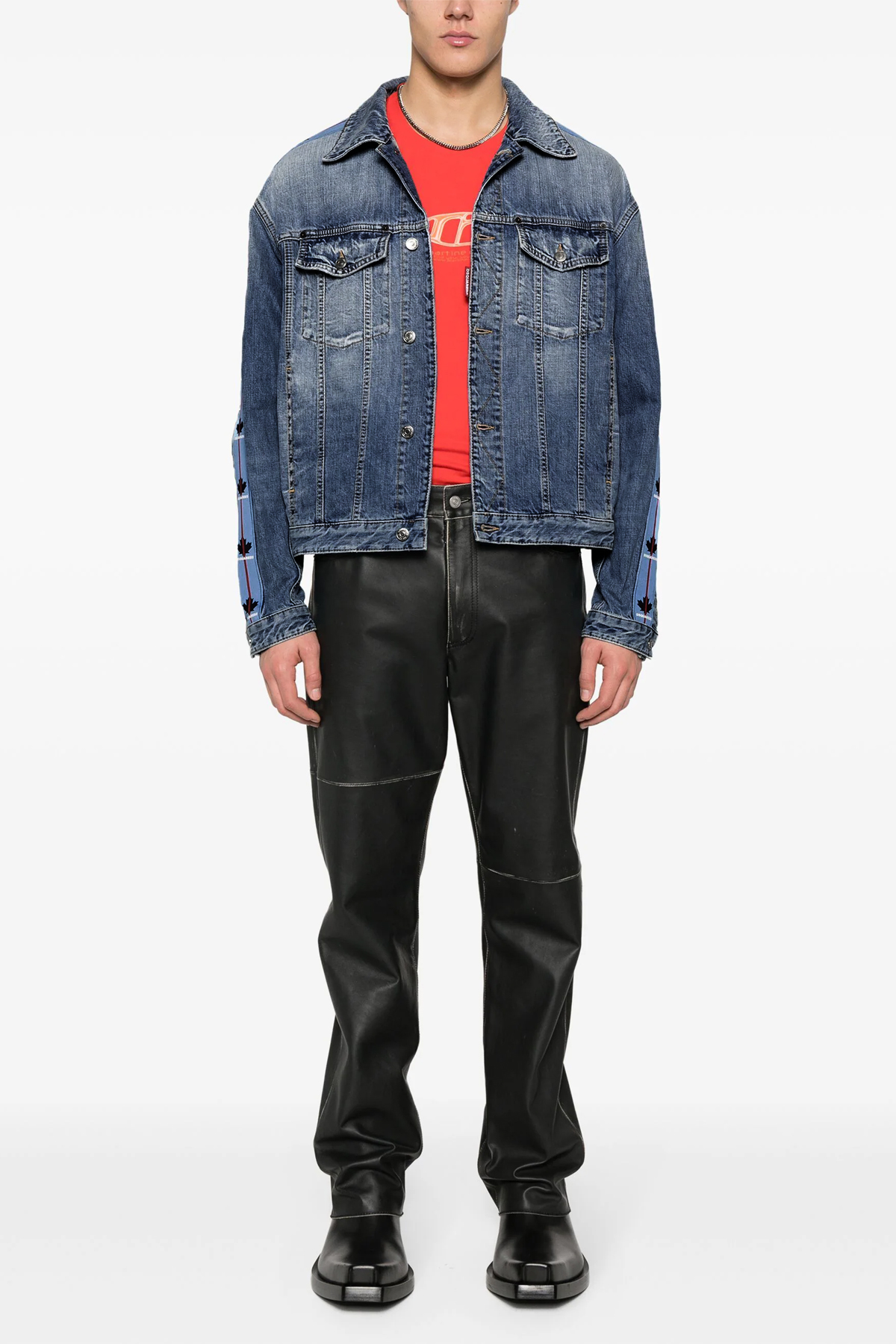 'Dan' denim jacket with button closure, button detail on the sleeves and a logo band on the sleeves.