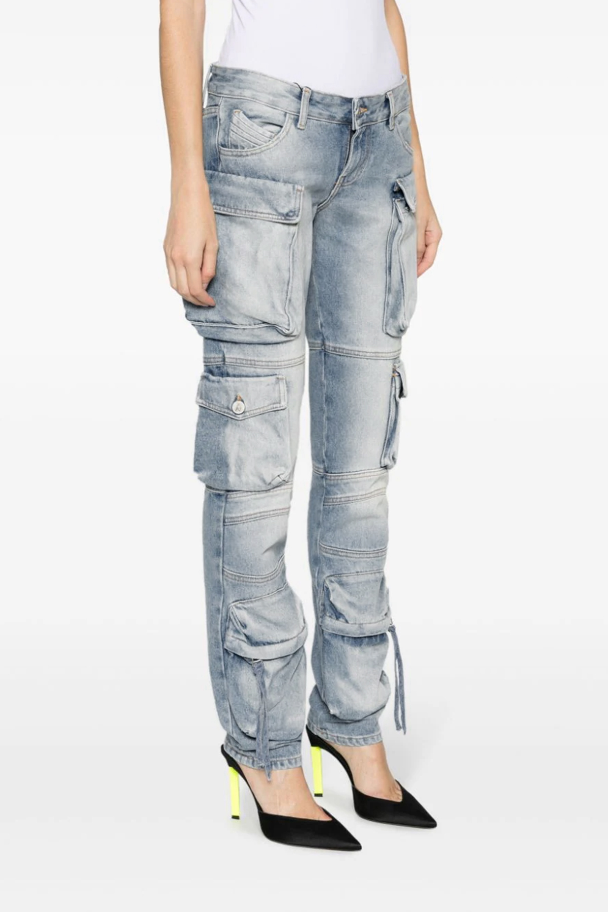 'Essie' cargo jeans in cotton denim with multipockets, skinny leg, low waist, zip and button closure.
