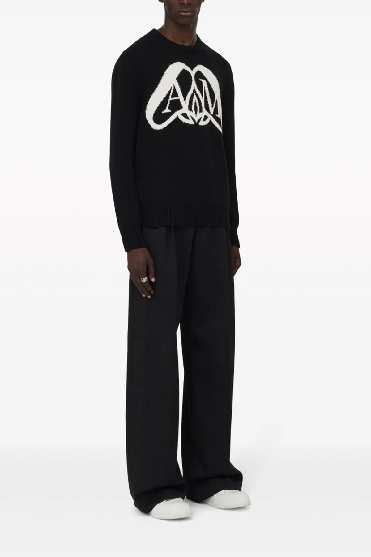 Cotton sweater with front inlaid 'Logo Seal', crew neck, long cuffed sleeves.