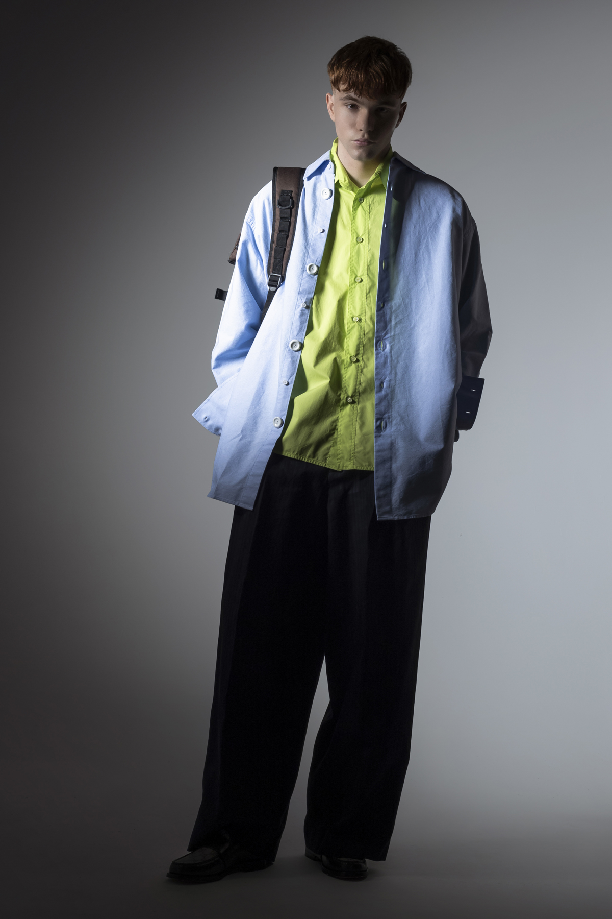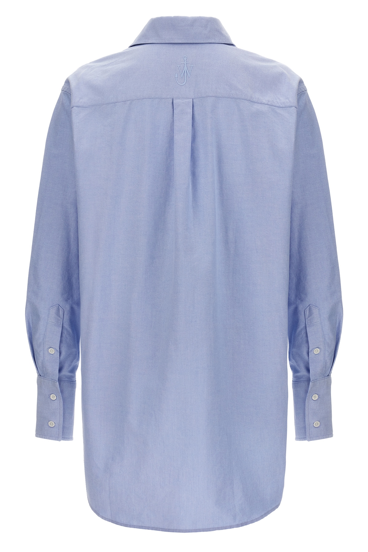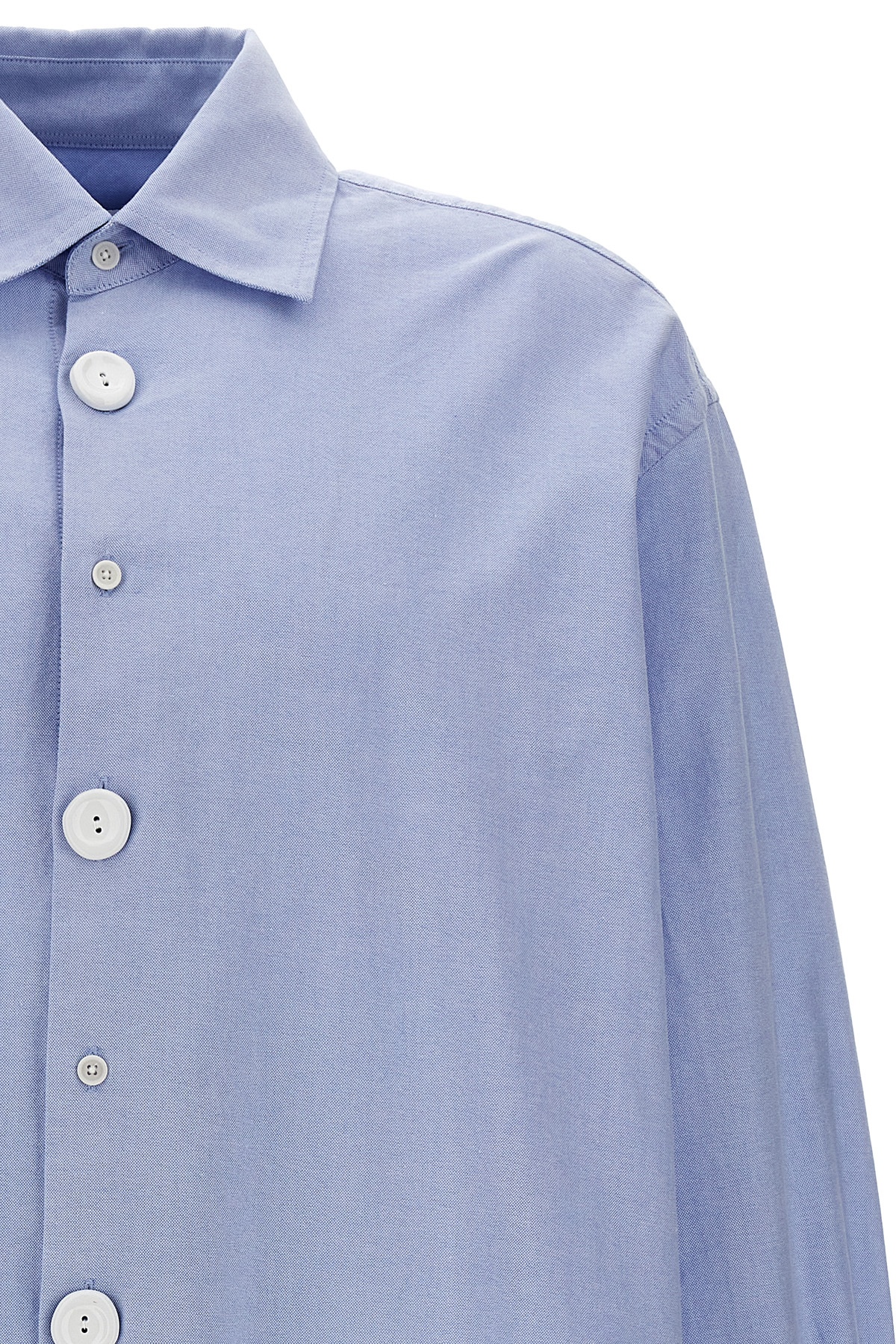 Oversized cotton shirt with buttons of various sizes and tone-on-tone embroidered logo on the back.