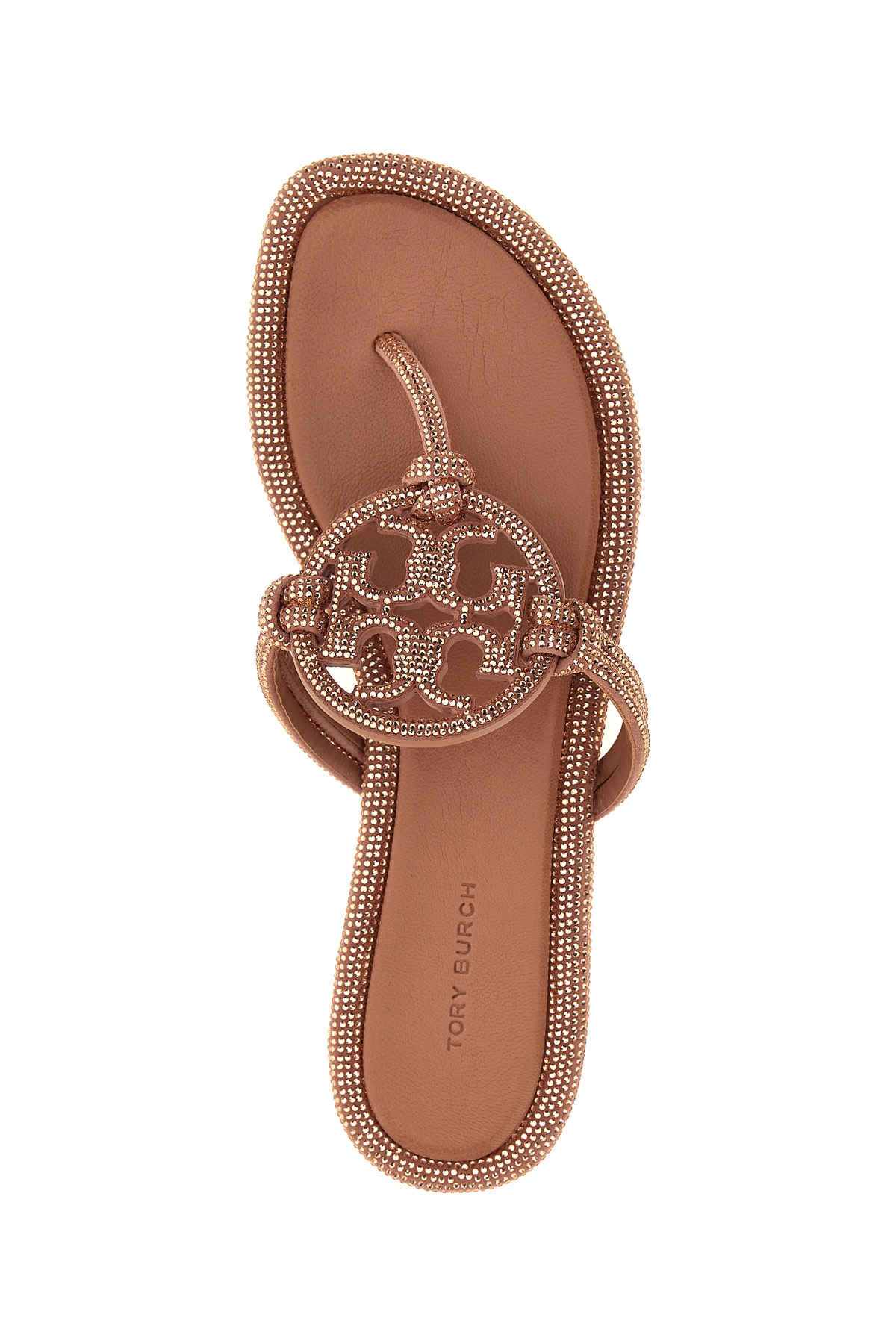 'Miller Knotted Pave' leather thong sandals with rhinestone applique, maxi logo, rubber sole.