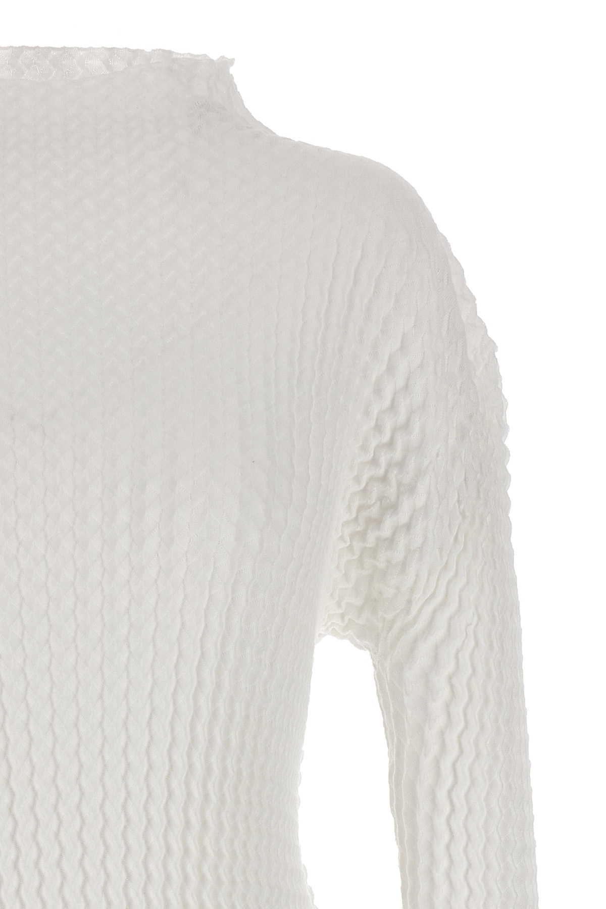 'Spongy' pleated fabric top with high neck, long sleeves.