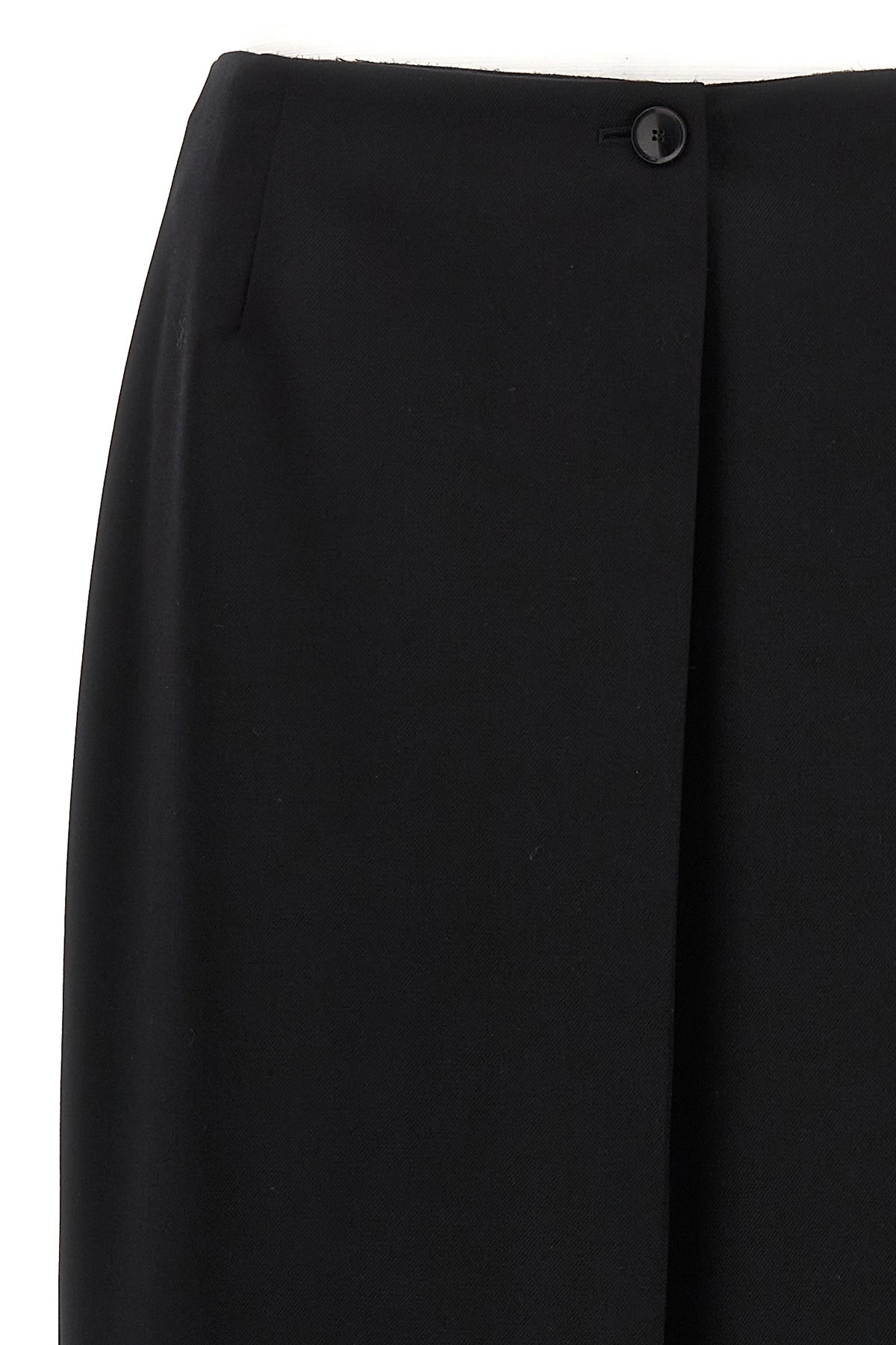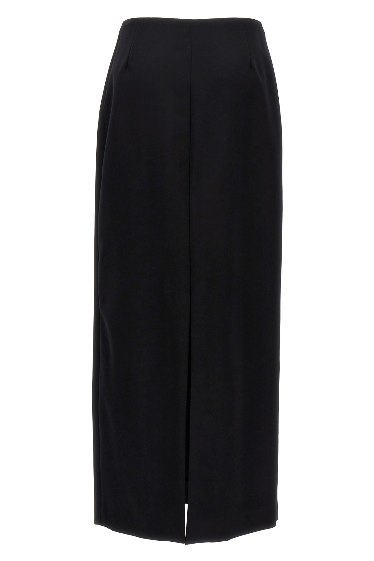 Long skirt in wool and mohair with back split and front button closure.