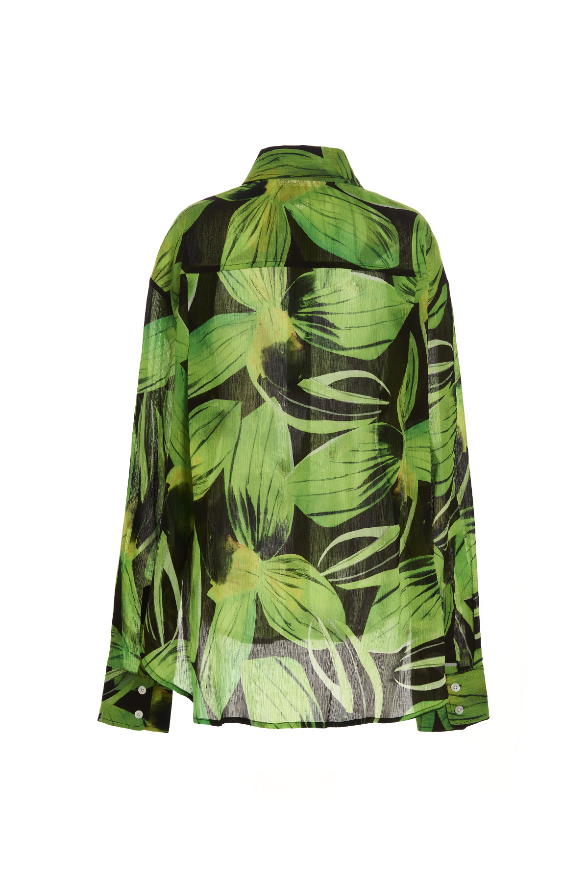 Silk blend oversized shirt with an all-over print, a button closure, long cuffed sleeves.