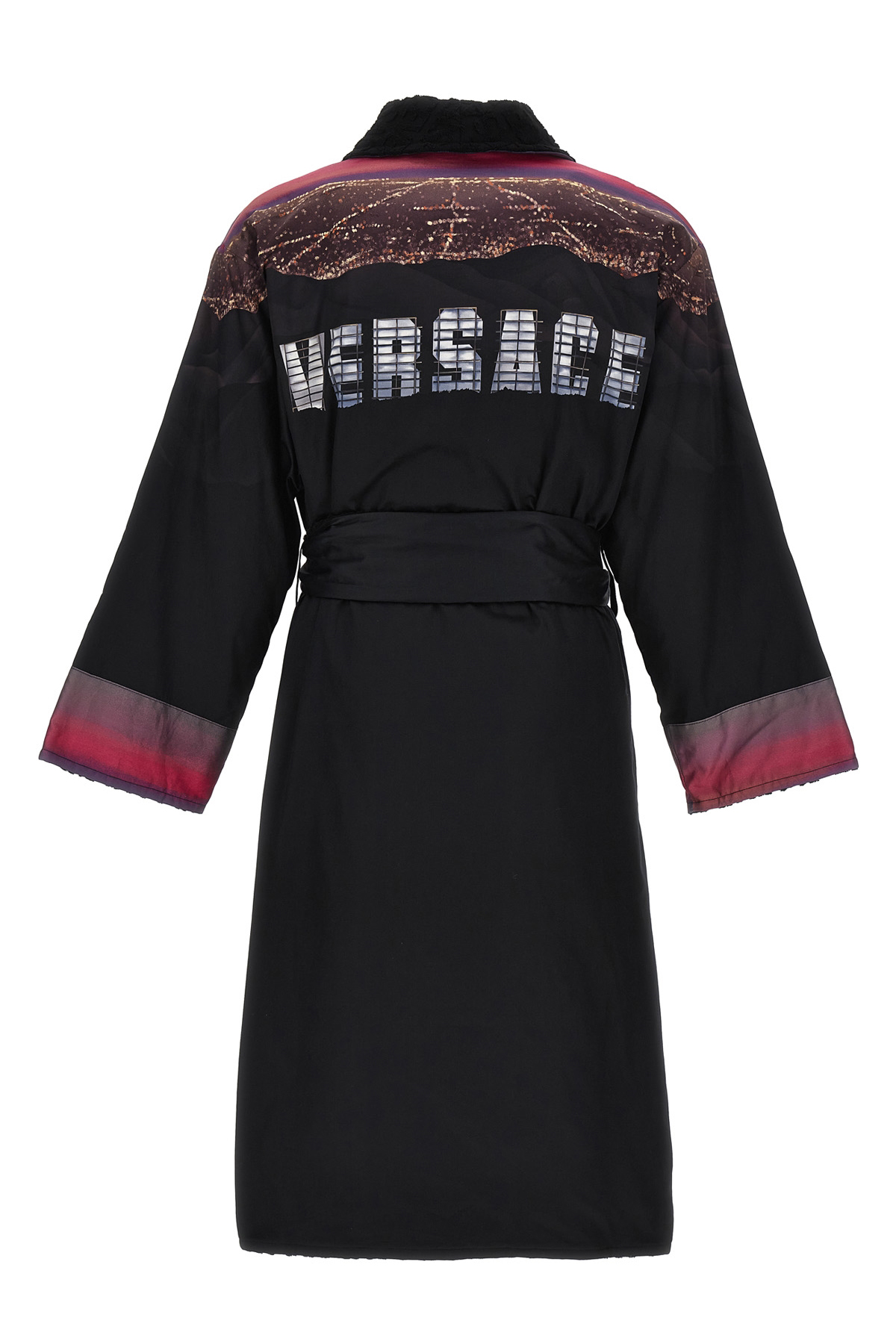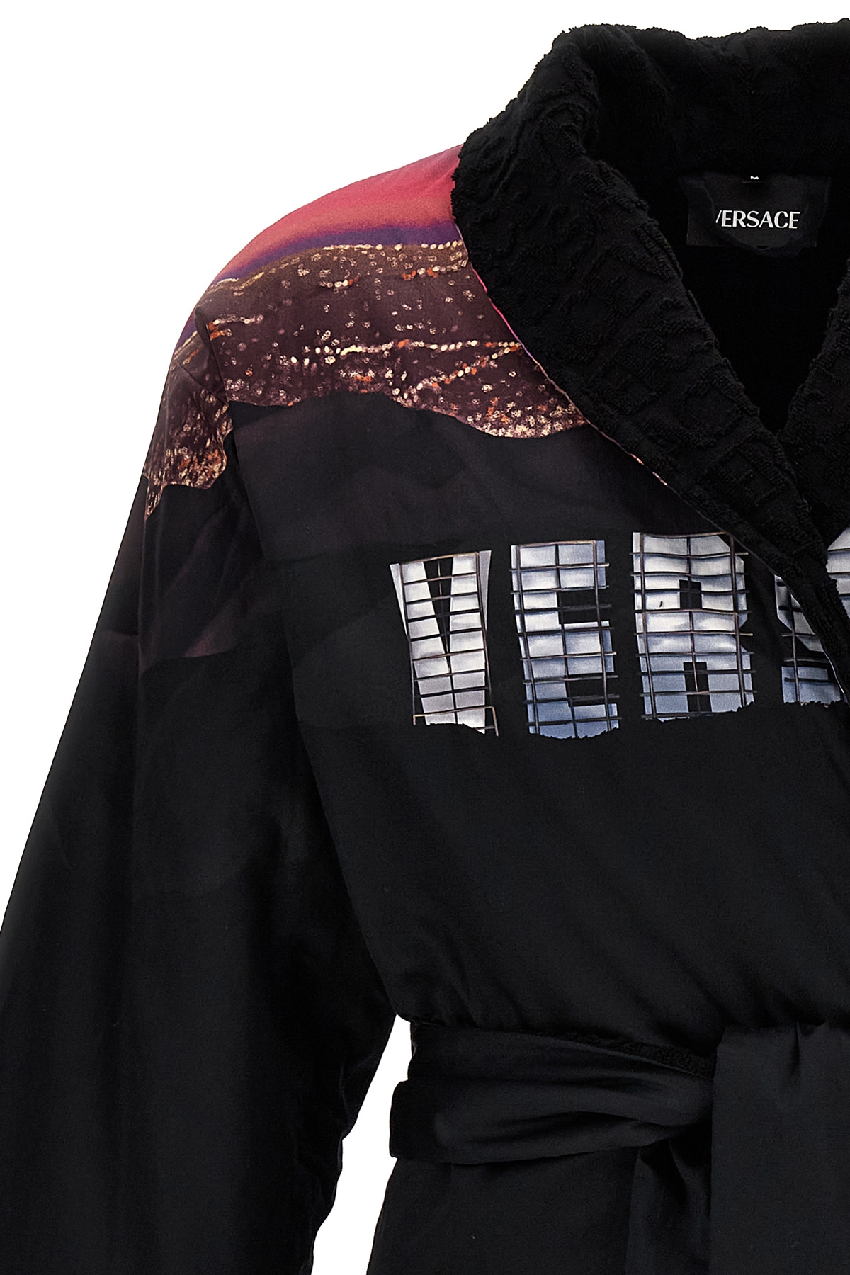 'Baroccodile' print bathrobe, belt closure at the waist, pockets, long sleeves.
